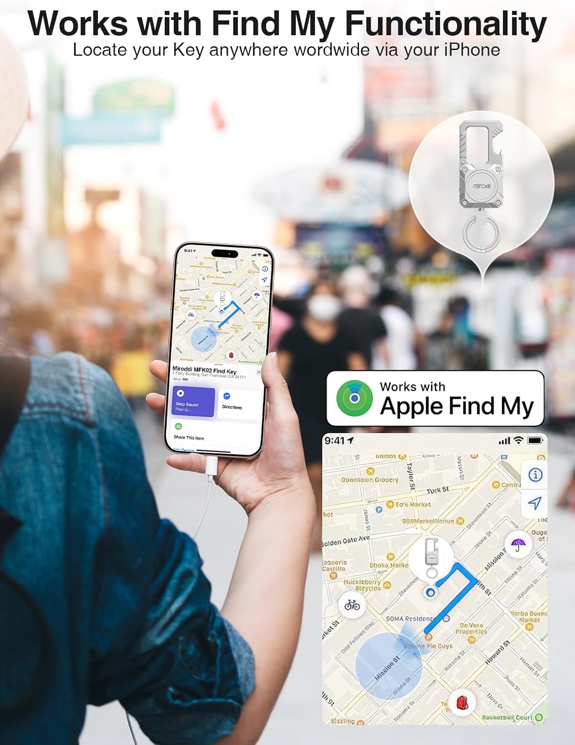 When you click “Sound Play” in the Find My app, the keychain will ring to remind you of its location
