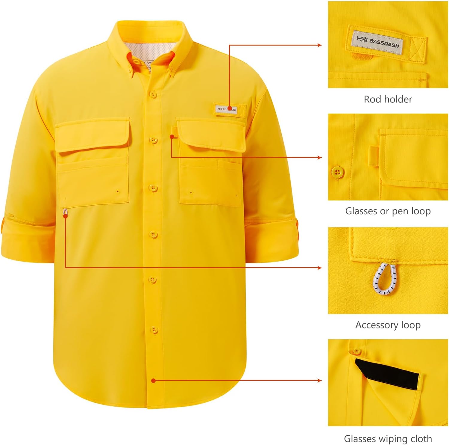 The video showcases the product in use.The video guides you through product setup.The video compares multiple products.The video shows the product being unpacked. BASSDASH Mens UPF 50+ Long Sleeve Button Down Shir Merchant Video