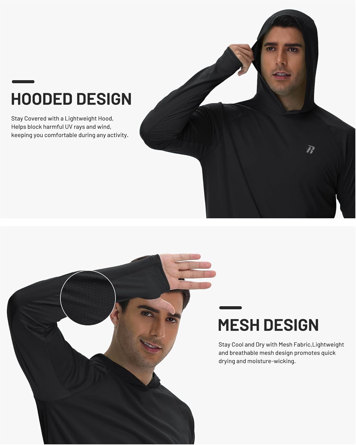 Runhit Mens Hooded Sun Shirts Uv Protection Long Sleeve