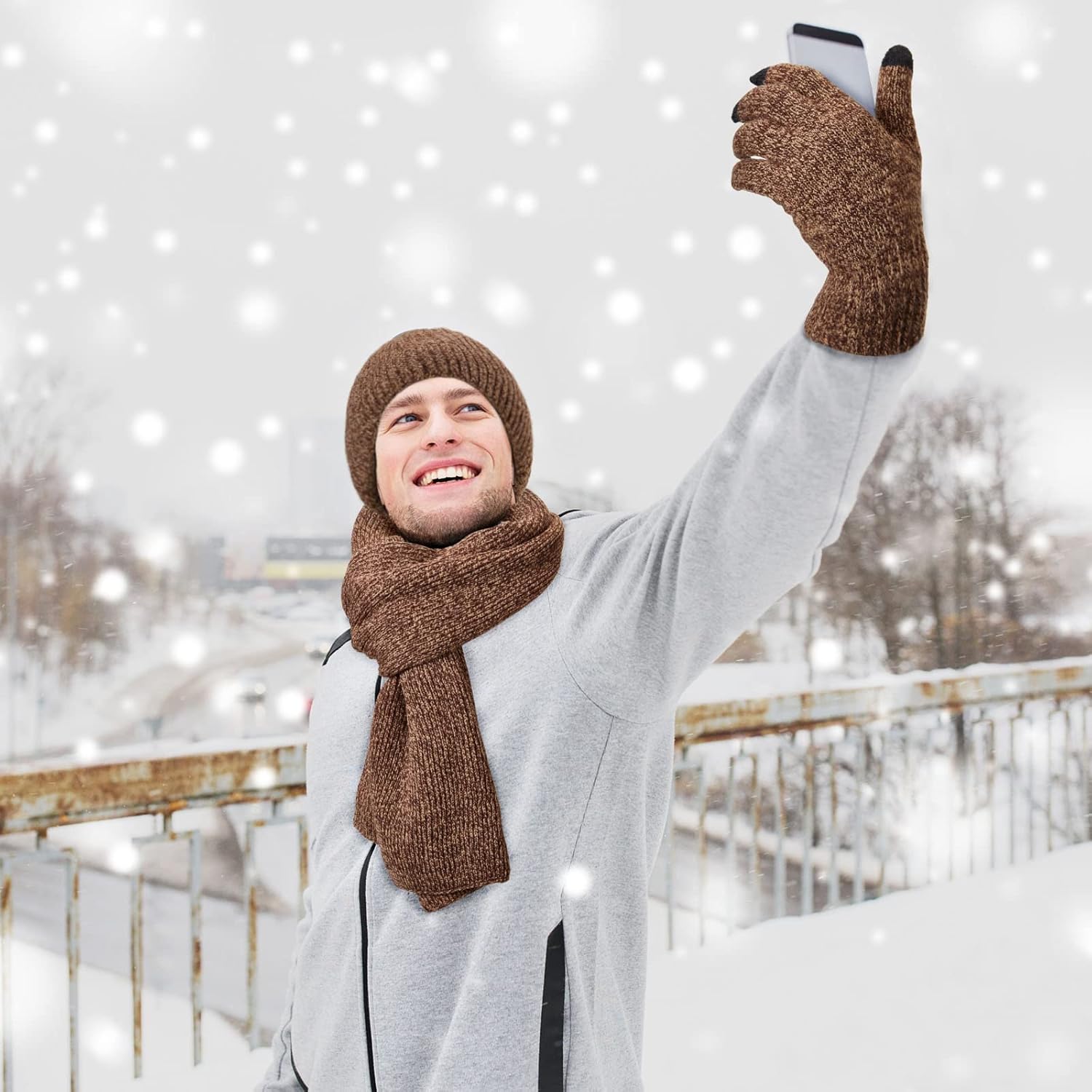 This knitted hat, scarf, touch screen gloves and socks set is suitable for men and women to wear when skiing, hiking or any outdoor winter sports and daily use. You can give this winter knitted set to your relatives and friends and enjoy the winter time.