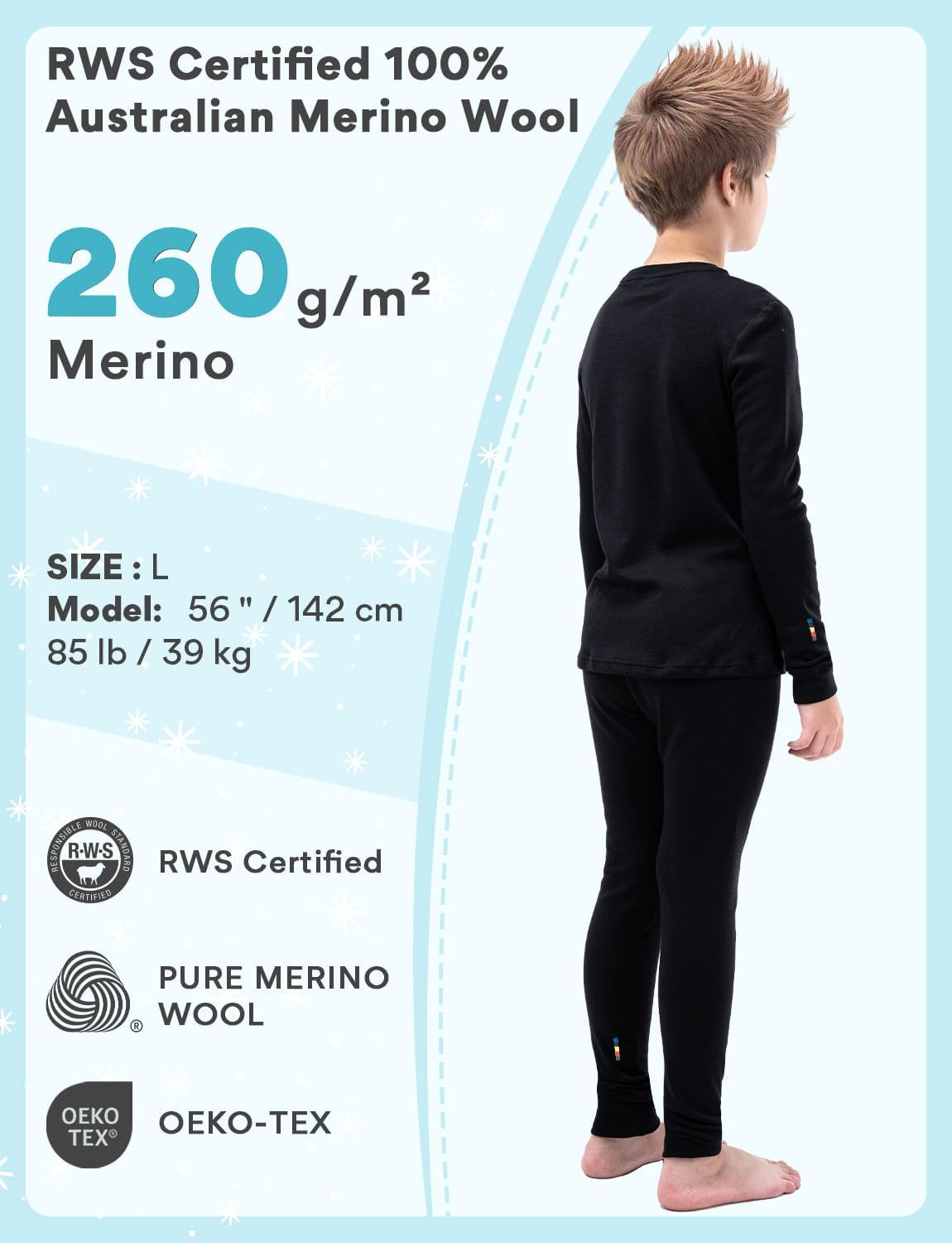 🥾 100% Merino Wool Base Layer Set Kids Boys Thermal Underwear Long Johns Shirts & Pants Cold Weather Skiing Hiking — Review, Key Features & Current Price