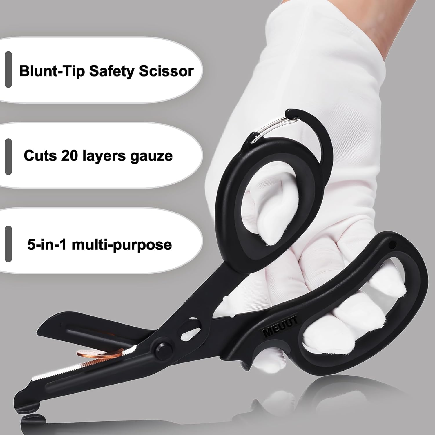 Patented medical scissor, Perfect for outdoors, first aid, nurse, firefighter, gardening, household.