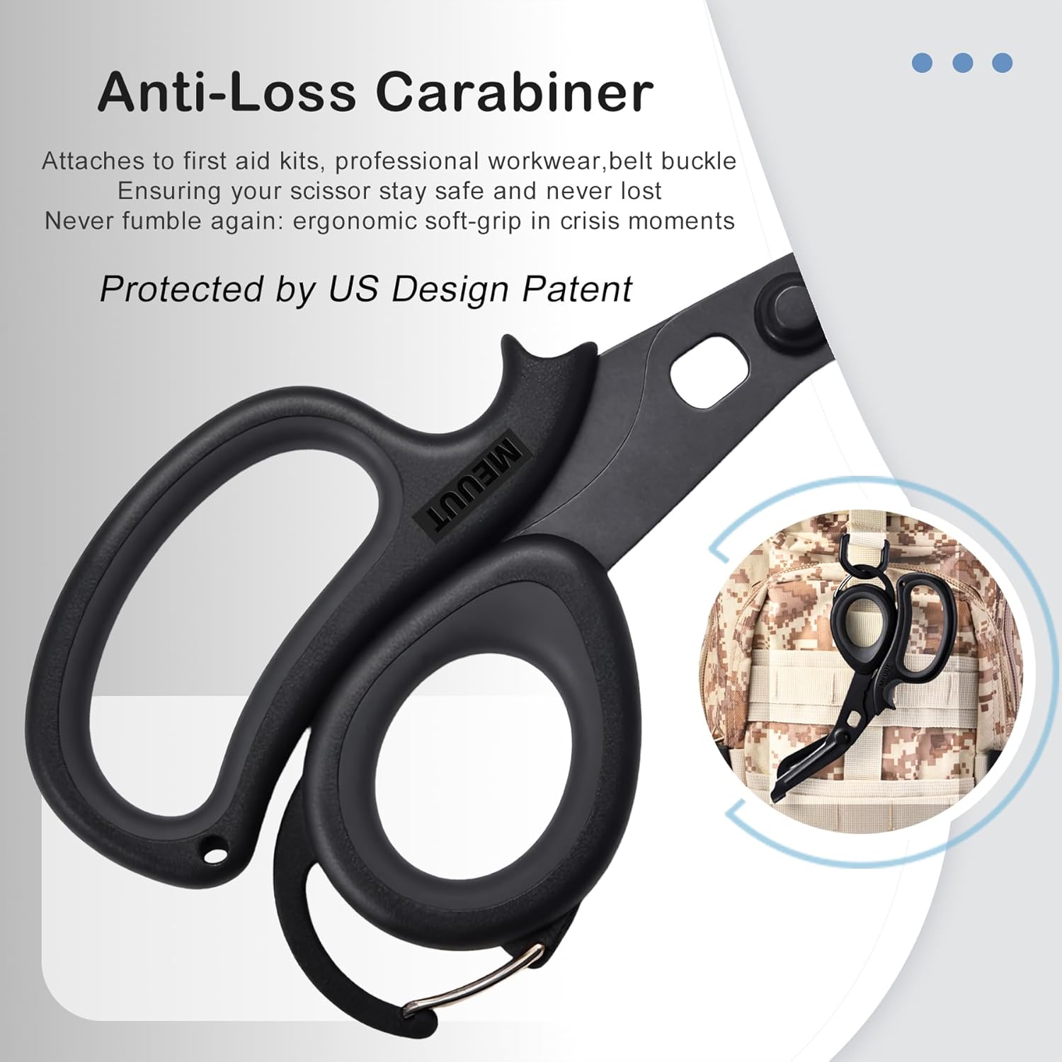 Patented medical scissor, Perfect for outdoors, first aid, nurse, firefighter, gardening, household.