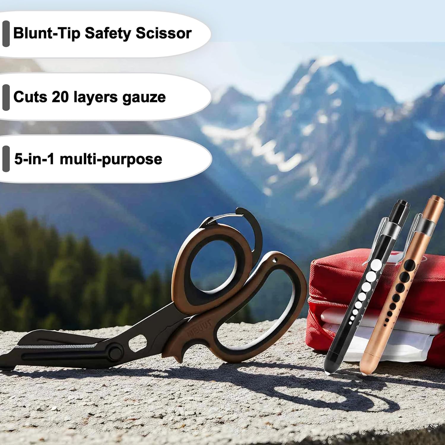 【Widely-Used】: Cut anything safely and efficiently with these sharp scissors. Ideal for cutting ribbon, burlap, rope, car seat belts, leather, remove wounded clothes, gauze, tape, bandages etc. The med kit is perfect for outdoors, first aid, nurse, doctor.