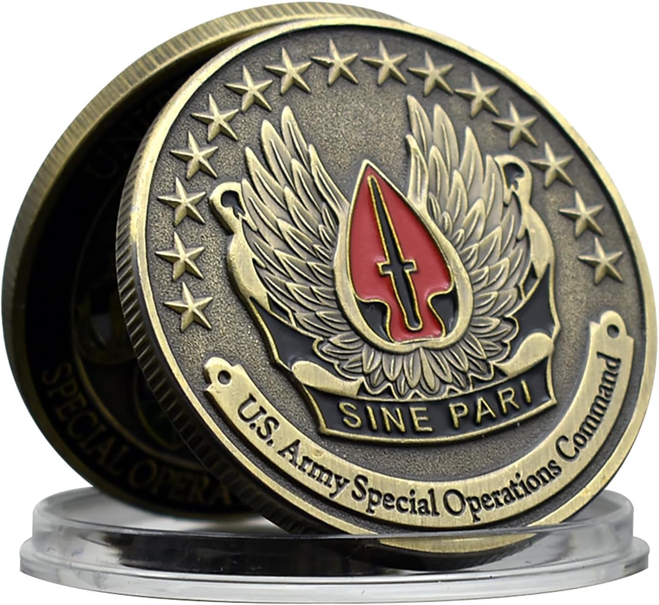 Authentic U.S. Army Challenge Coin: Celebrate the honor and bravery of U.S. Special Operations Forces with this meticulously crafted military challenge coin. Featuring the official emblem of the Army Special Operations Command, this coin symbolizes excellence, courage, and dedication to service.