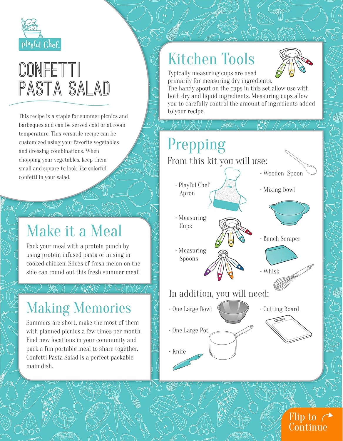 Kid safe. Kid sized: Measuring cups are color-coded to match the included recipe cards and to assist the youngest chefs. All cooking utensils are made for small hands with safety as the highest priority.