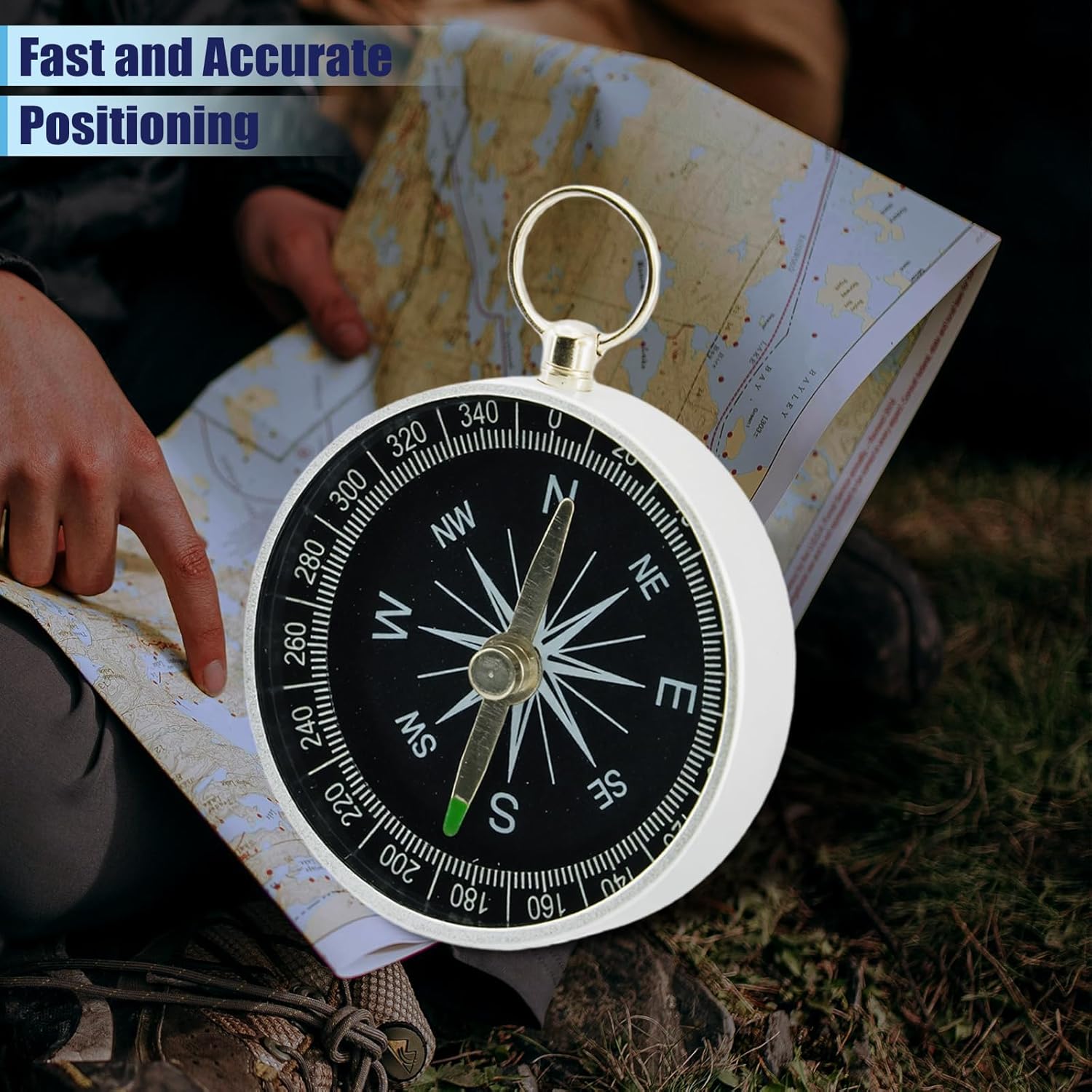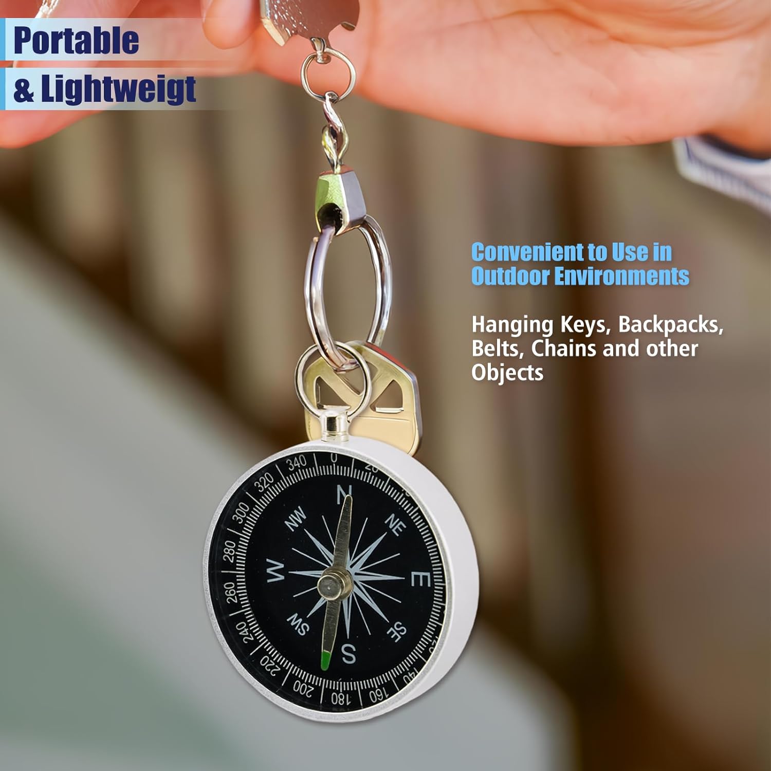 Lightweight and portable: This pocket compass is made of aluminum alloy, featuring a small size and light weight. It is rust-proof, wear-resistant, waterproof and durable. There is a pull tab at the top of the compass, which can be connected to the zipper rings or belts of jackets, bags, etc.