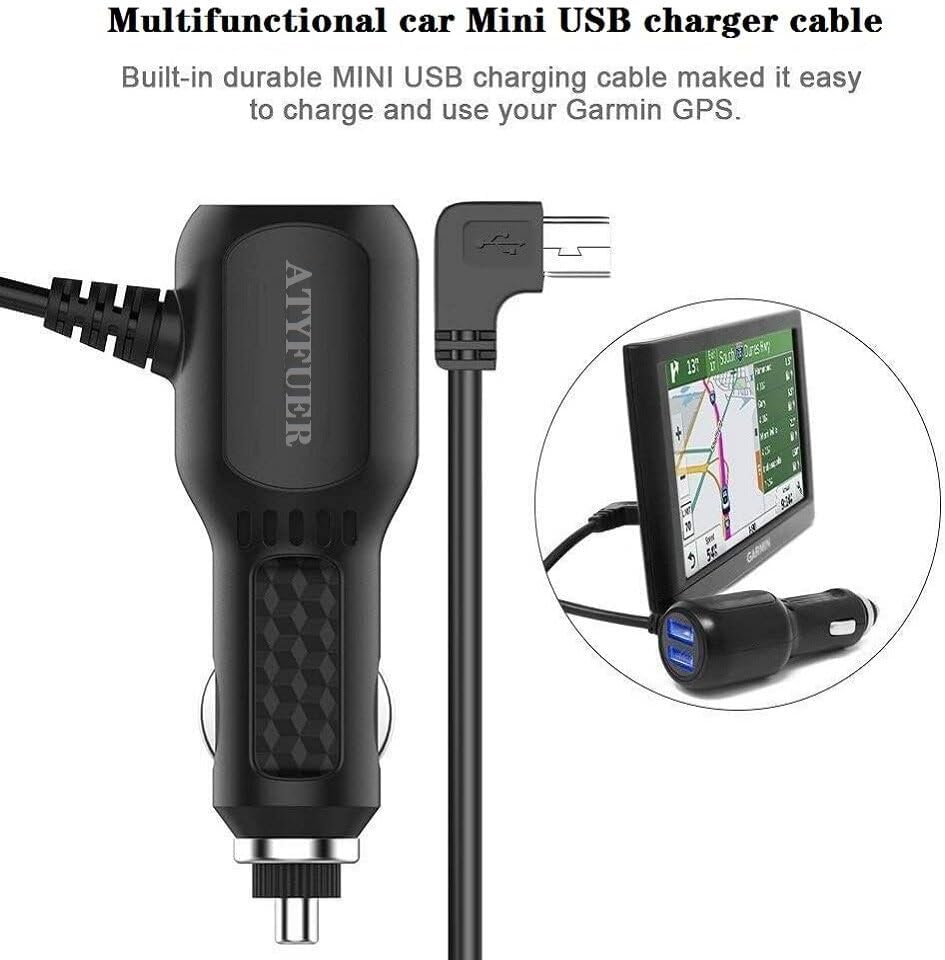 ★ 【 Mini USB power cord】 Built-in 11.5-foot-long Right corner high-speed Mini USB Charger cable to ensure that you can always quickly connect your garmin GPS navigators and dash cam Recharge.