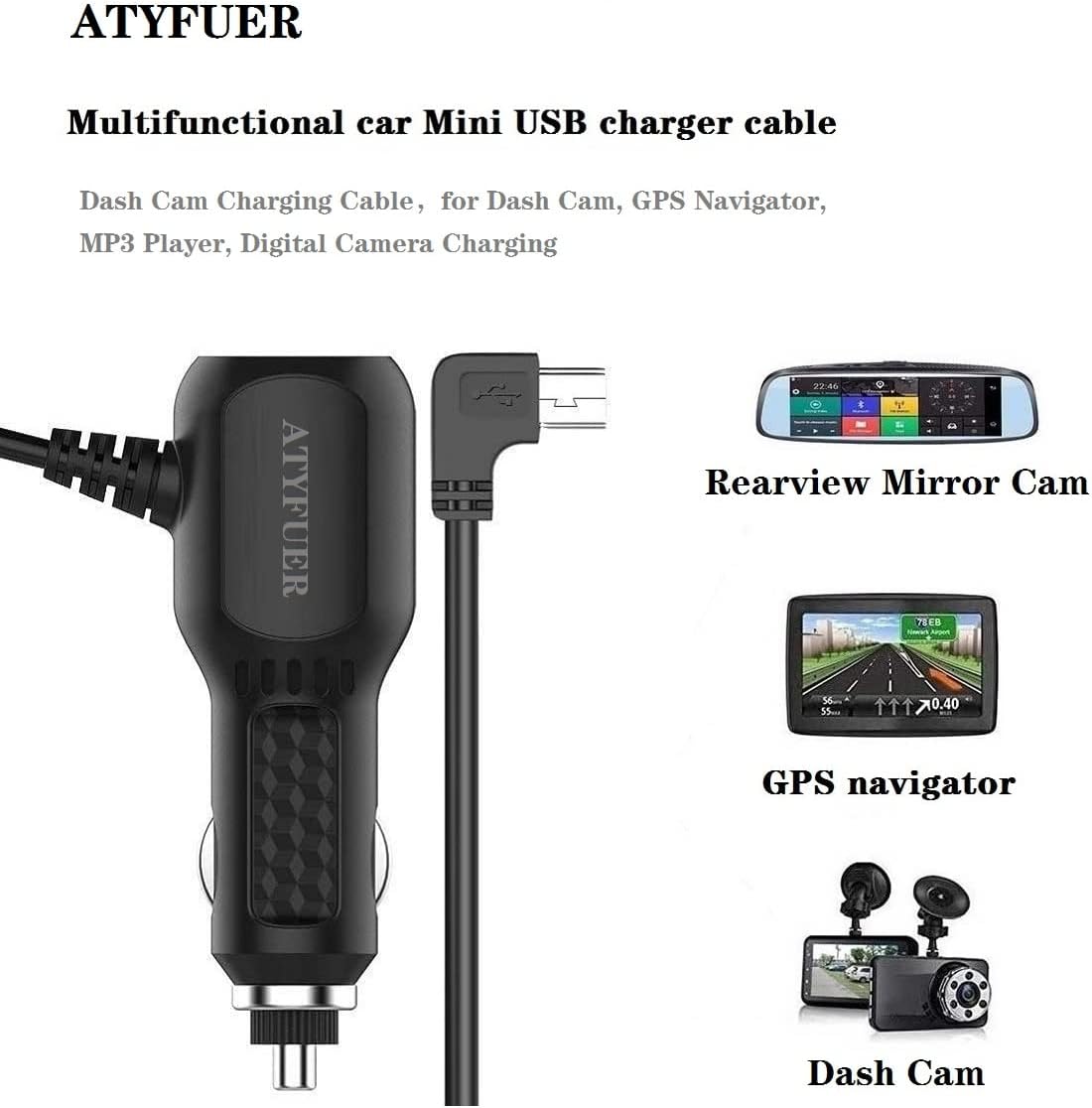 ★ 【 Dash Cam Charger Cable Wide compatibility】 This Mini USB2.0A Car Dash Cam Dharger cable is suitable for most Dash Cam,GPS Navigator (Voltage between 12V-24V cars and trucks). Our Dash Cam charger cable is suitable for almost all mini USB devices, such as :Dash Cam, Rearview mirror driving recorders, GPS navigators ,MP3 Player,Digital Camera,Game console and radar detectors.★Note :All delivery 90 degree right corner joint.