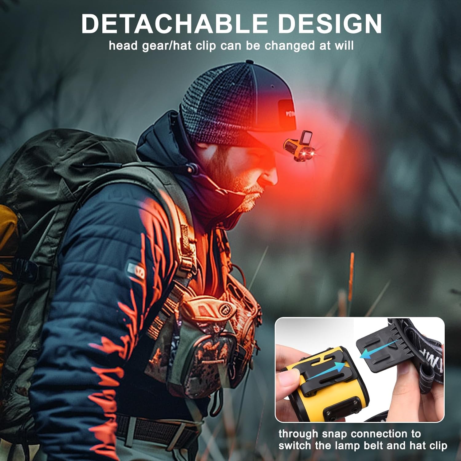 Hand Free with Adjustable Clip: In addition to being suitable for head wearing, the headlamp includes an adjustable clip that attaches to your hat, allowing for completely hands-free lighting and adjusting the angle. Whether you’re fishing, cooking, or navigating trails, this design ensures maximum comfort and freedom.