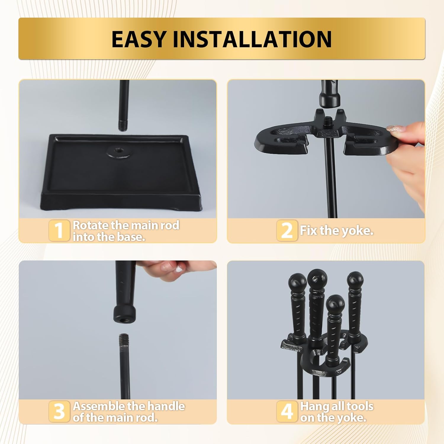 【EASY TO ASSEMBLE】The package of the fireplace set include a product introduction, which shows all parts and installation methods. You can easily assemble this set of fireplace set tools in 2 minutes. This practical and durable tool will go well with your fireplace.