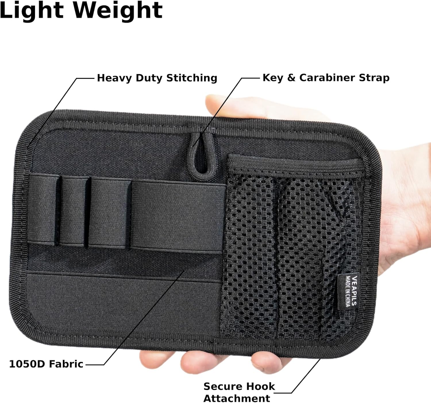 With this tactical gear, you can carry tactical pen, keychain, multtool, knife and more with you. The hook and loop closure design allows you to easily attach the pouch to your backpack so that it won’t fall off easily and avoid losing it.