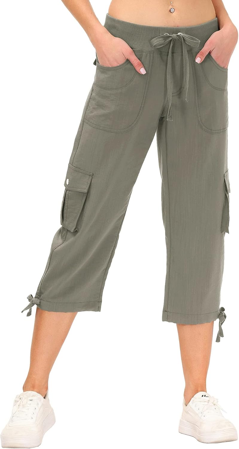 Customers find these capris comfortable, particularly in hot weather, with a nice fit that’s loose in the right places. They appreciate the lightweight design, especially for summer wear, and describe the material as soft and nice to the touch. Customers like the pants’ appearance and quality, with one noting they can be dressed up or down. The sizing receives mixed feedback – while some say it’s spot on, others mention they run bigger than true to size. The material thickness is also mixed, with some praising it while others find it very thin.