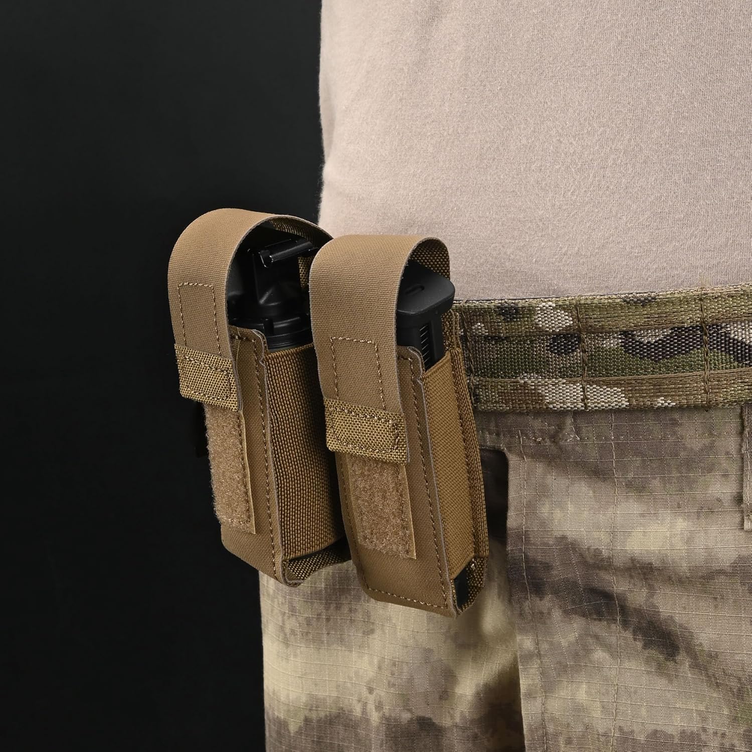 Material of pepper spray holder: Made of laminated 500D nylon fabric, duty belt pouch is lightweight, durability and wear resistance. Suitable as EDC pouch or utility pouch.