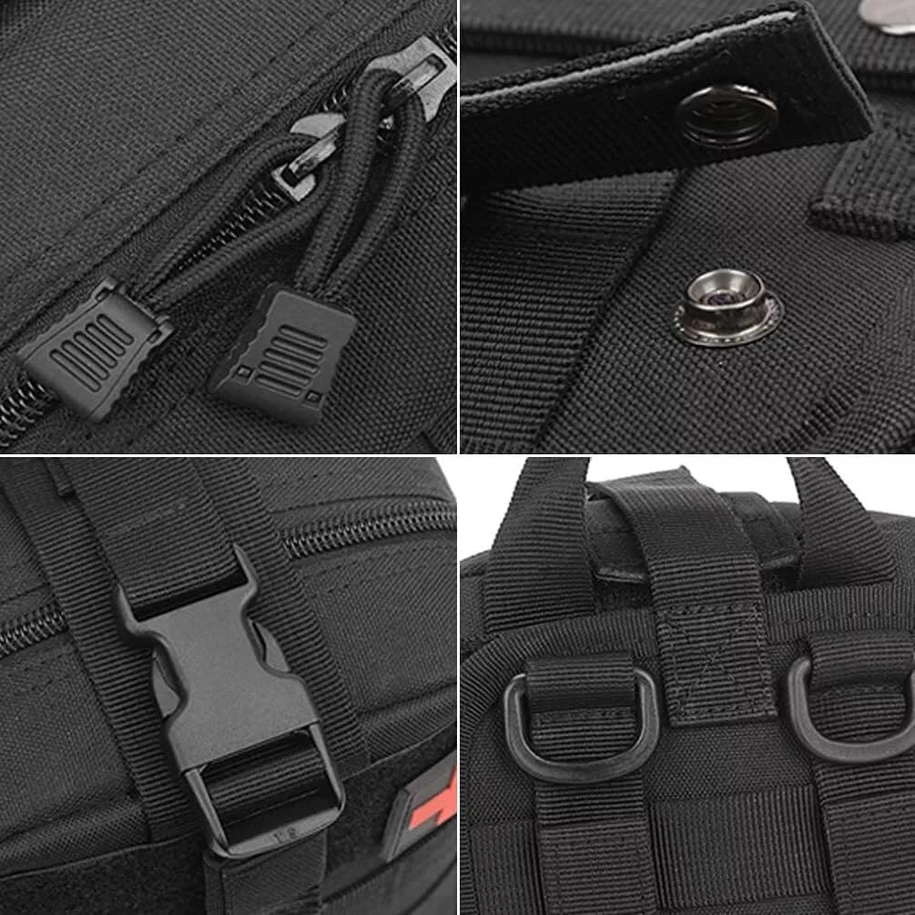 ☺FUNCTION FOR EVERYONE AND ANY ACTIVITIES:The molle medic pouch comes with MOLLE system, tough nylon strap and strong copper buckle, which can be attached to belt, backpack, tactical vest and any other MOLLE compatible device. Suitable for cycling, camping, hiking and other outdoor activities. We must pay attention to safety in outdoor activities. We should prepare all the necessary outdoor products before departure. We hope our medical pouch is the best choice for your outdoor activities.