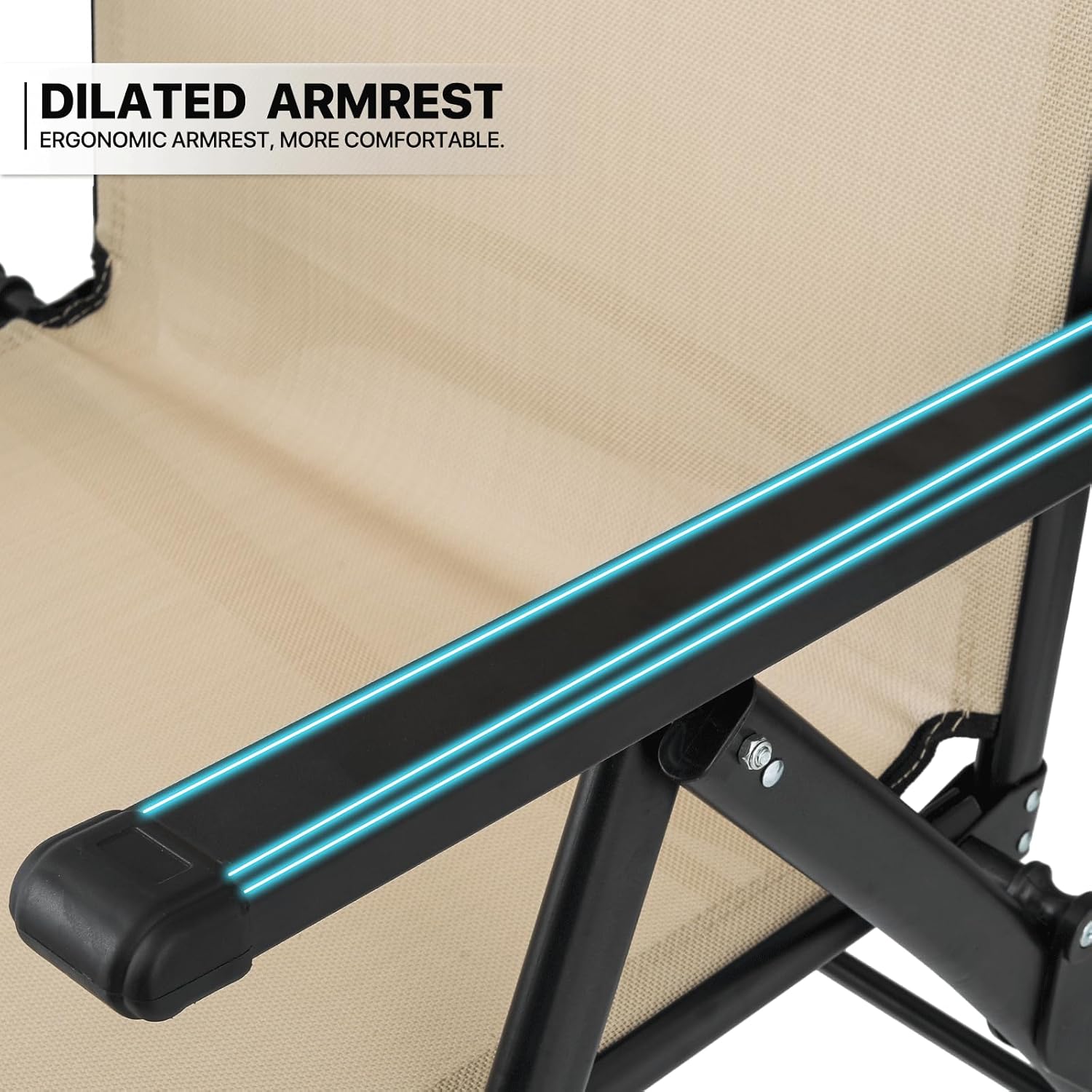 Comfortable Sitting Experience – Designed with ergonomic armrests and high backrest, our patio folding chair set fits your body curve perfectly for maximum relaxation. Moreover, the breathable fabric prevents you from feeling stuffy in the hot summer.