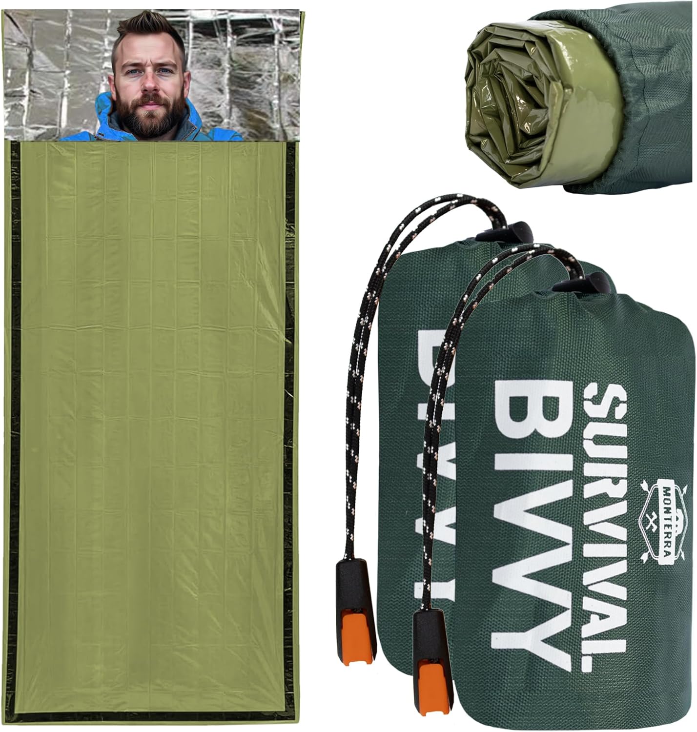 EMERGENCY PREPAREDNESS: Includes two survival bivvys, each neatly folded into a drawstring stuff sack. The 120-decibel survival whistle can alert rescuers up to 1-mile away, while the versatile paracord drawstring can be used for various survival needs. Be prepared for any situation with these essential tools for survival.