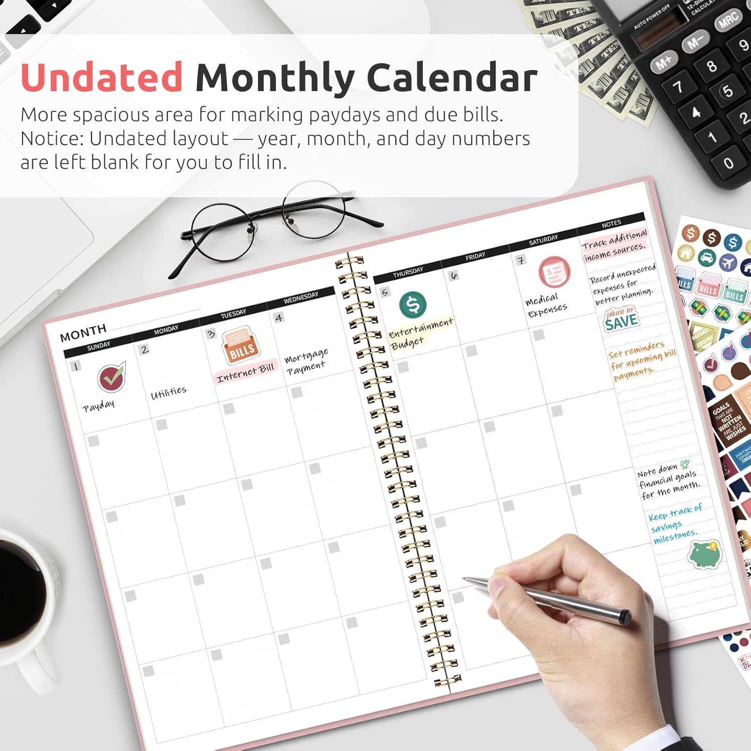 Undated Monthly Calendar & Bonus Stickers – Featuring undated calendar each month, you’ll have ample space to mark paydays, bills due, appointments, and important dates. Say goodbye to difficult writing spaces. Plus, we’ve included 3 cute sticker sheets that allow you to personalize your financial organizer and make budgeting more fun. Dates are not pre-printed and are completed by the user.