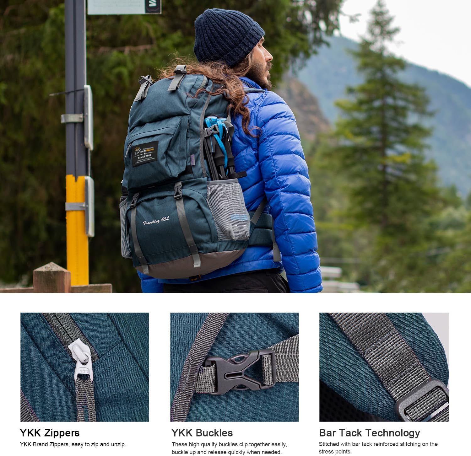 Durable Backpack: This 40L hiking backpack is made of tear-resistant and water repellent polyester fabric. The size is 21.7*13*7.9 inches. The spacious capacity and durable material make this backpack suitable for hiking and short weekend business trips.