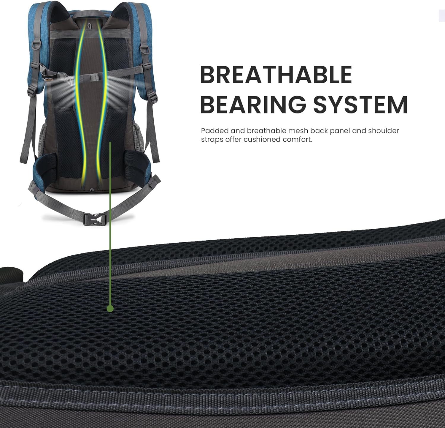 Comfortable and Breathable: This travel backpack uses breathable mesh padding and a ventilated back system to keep your items dry and ventilate your back. The ergonomically designed structure helps to evenly distribute the weight, making it comfortable to carry while hiking.