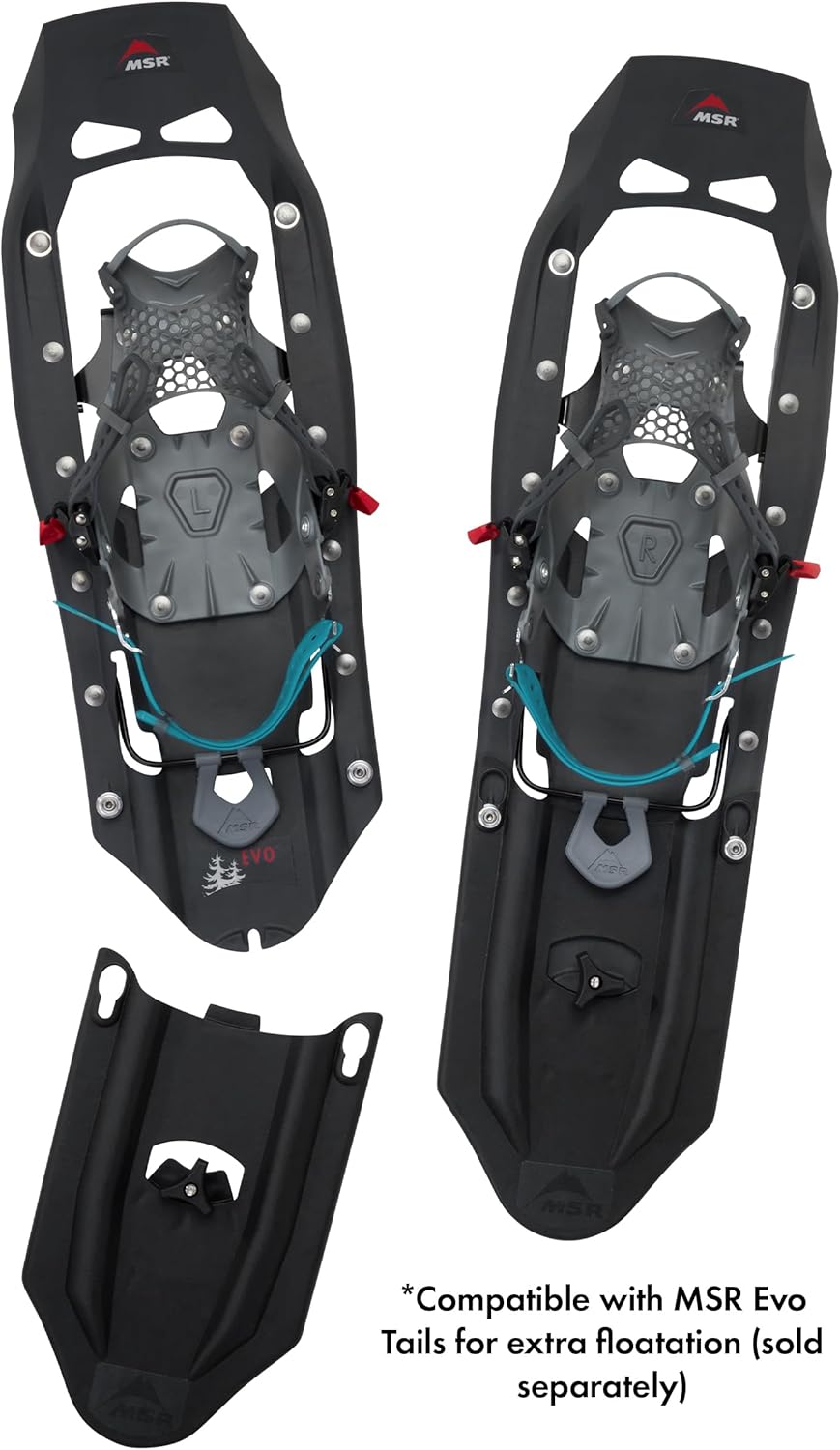 22 inch snowshoes support up to 180 pounds without additional MSR Evo Tails (sold separately)