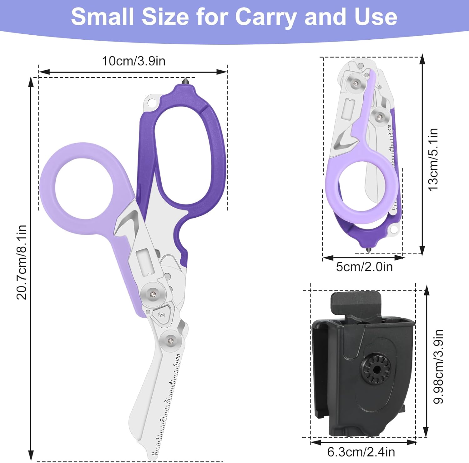 COMPACT & RAPID DEPLOYMENT – Designed for easy carry and swift access, these foldable shears come with a holster that can be worn upside-down on your belt. The innovative design locks the shears securely in place, allowing for one-handed operation and quick deployment when every second counts.