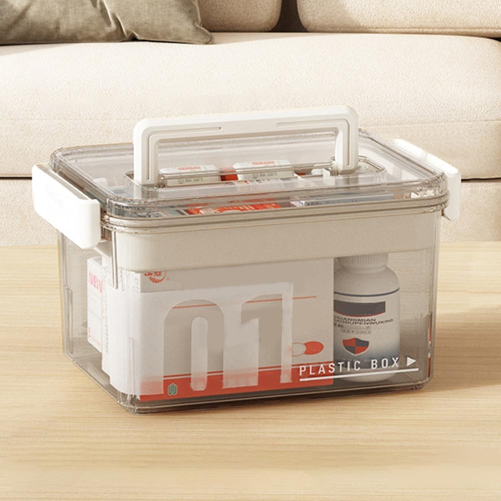 【PORTABLE HANDLE】Designed with portability in mind, easy to carry around, making it ideal for trips or emergencies.The medical box storage box has a practical handle, when you need to carry it, just lift up the sturdy handle, very convenient.