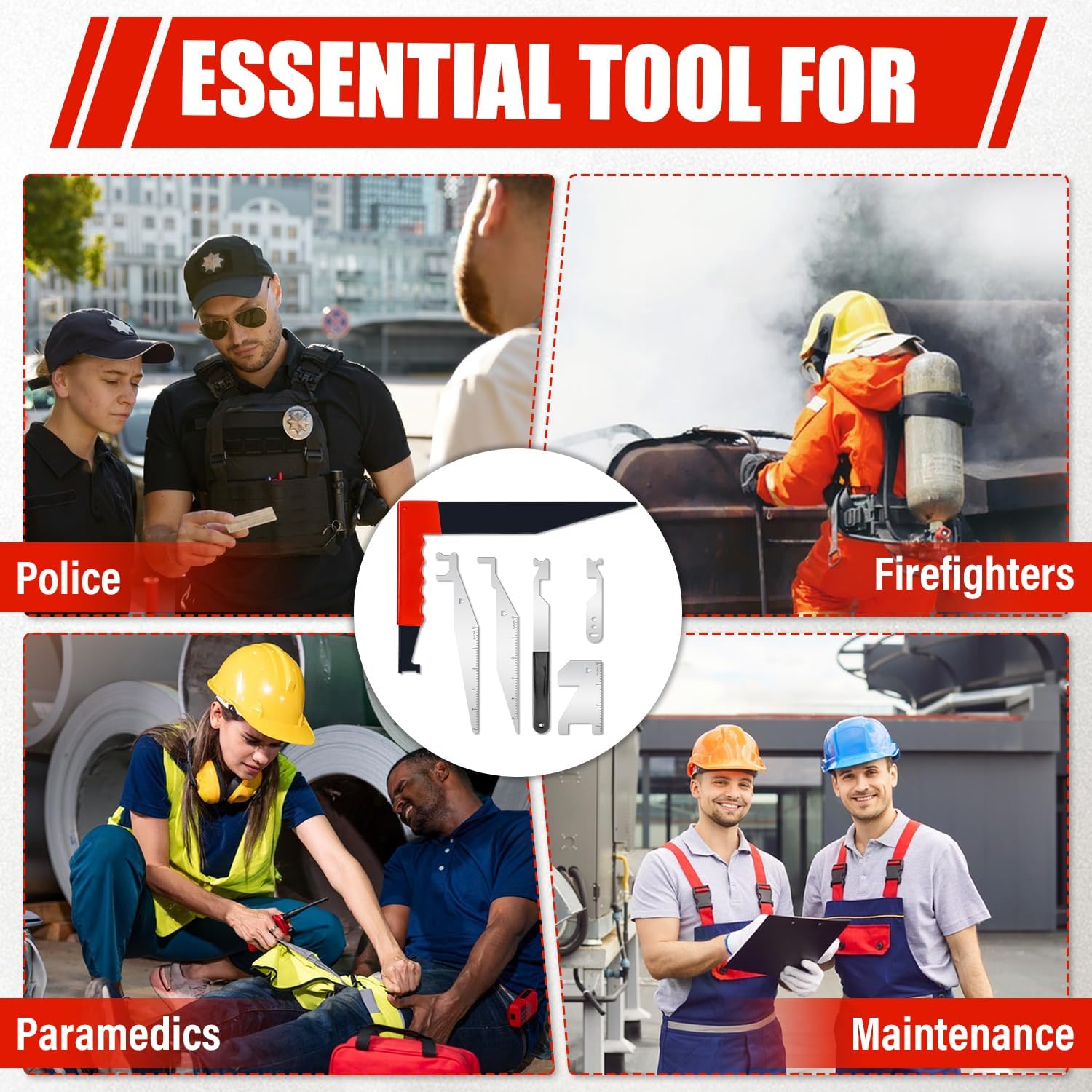 Premium Materials: This multi-purpose tool kit utilizes premium spring steel material, ensuring resistance to breakage and deformation while delivering robust durability. It stands as the preferred tool for firefighters and emergency responders.