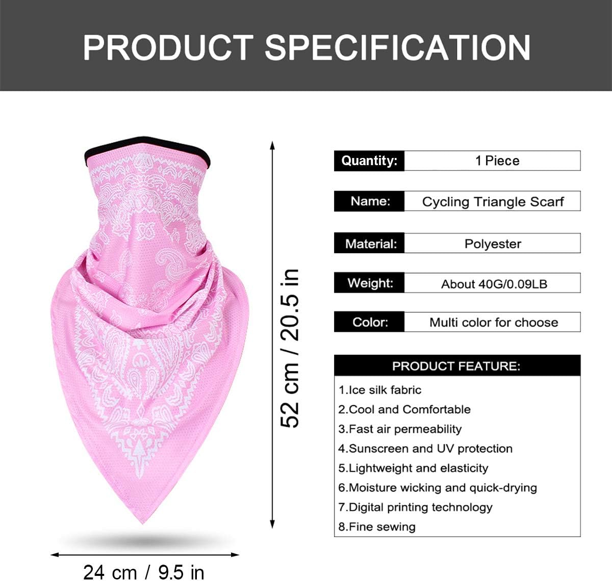 Made of high quality Polyester Material, ice silk fabric, superior soft, durable and wear-resistant. Comfortable to wear, prefect protect your face in all seasons.