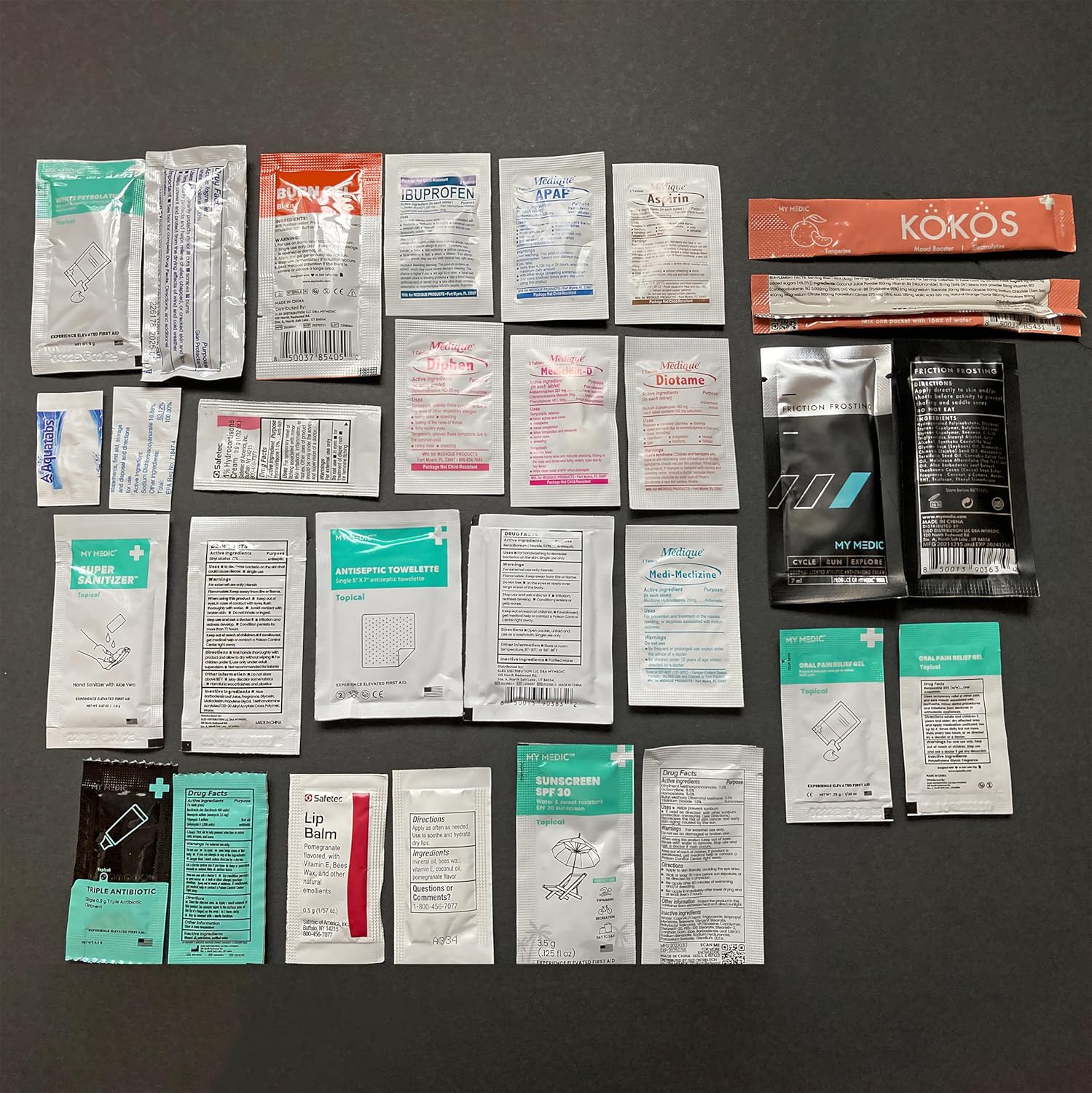 STANDARD KIT INCLUSIONS – Our first aid bag includes gloves, bandages, blister, mini burn aids, and hydration tools, and more. Can be your personal mini med kit or an addition to you hiking or camping essentials.