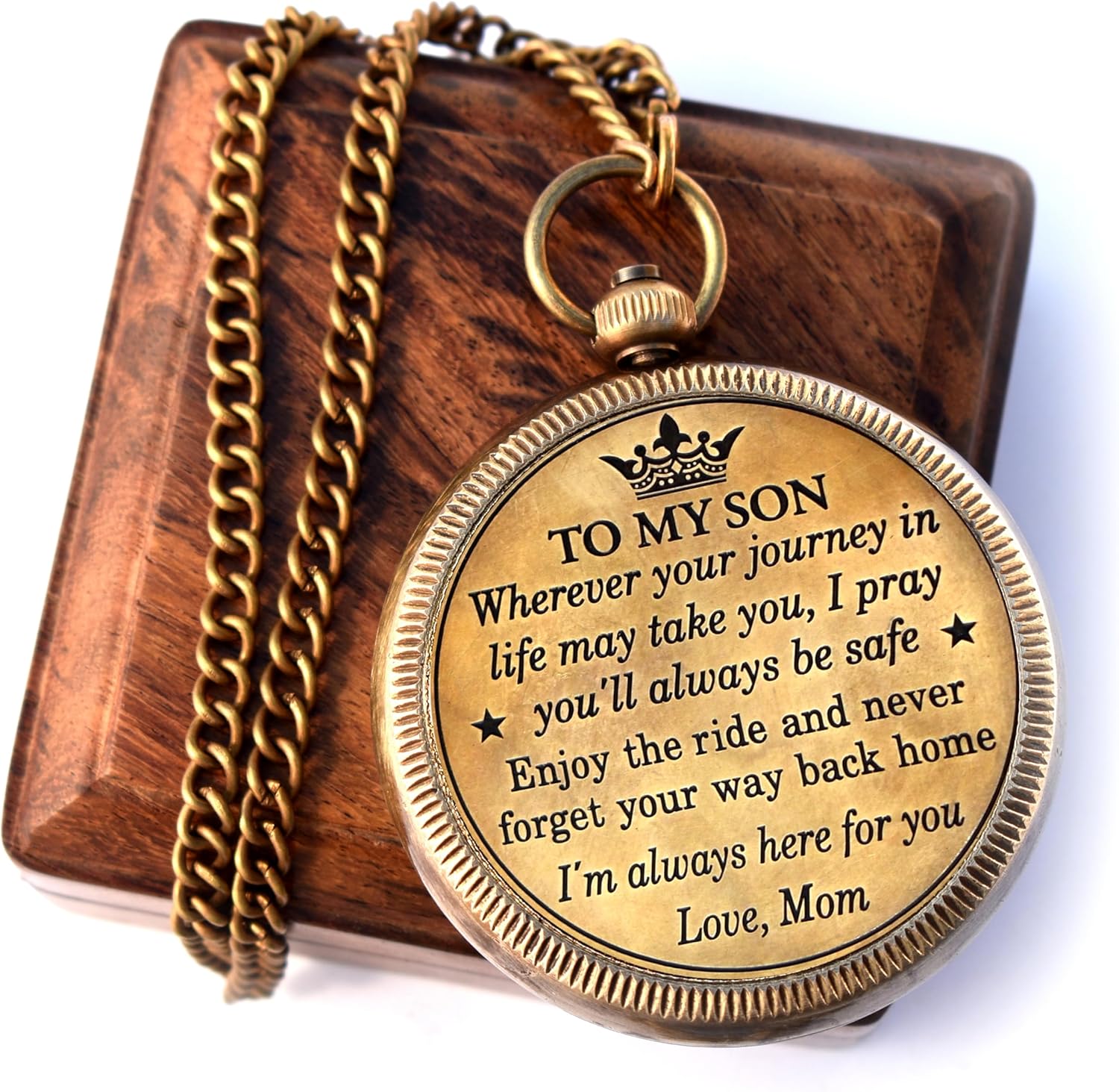MOM AND SON GIFT – A thoughtful and stunning gift from Mom to Son. Engraved compass makes a perfect Christmas gift for son, Wedding gift for son, Birthday gift for son, or College Graduation gift for son. The Compass is engraved with “To My Son Wherever Your Journey In Life May Take You I Pray You’ll Always Be Safe”