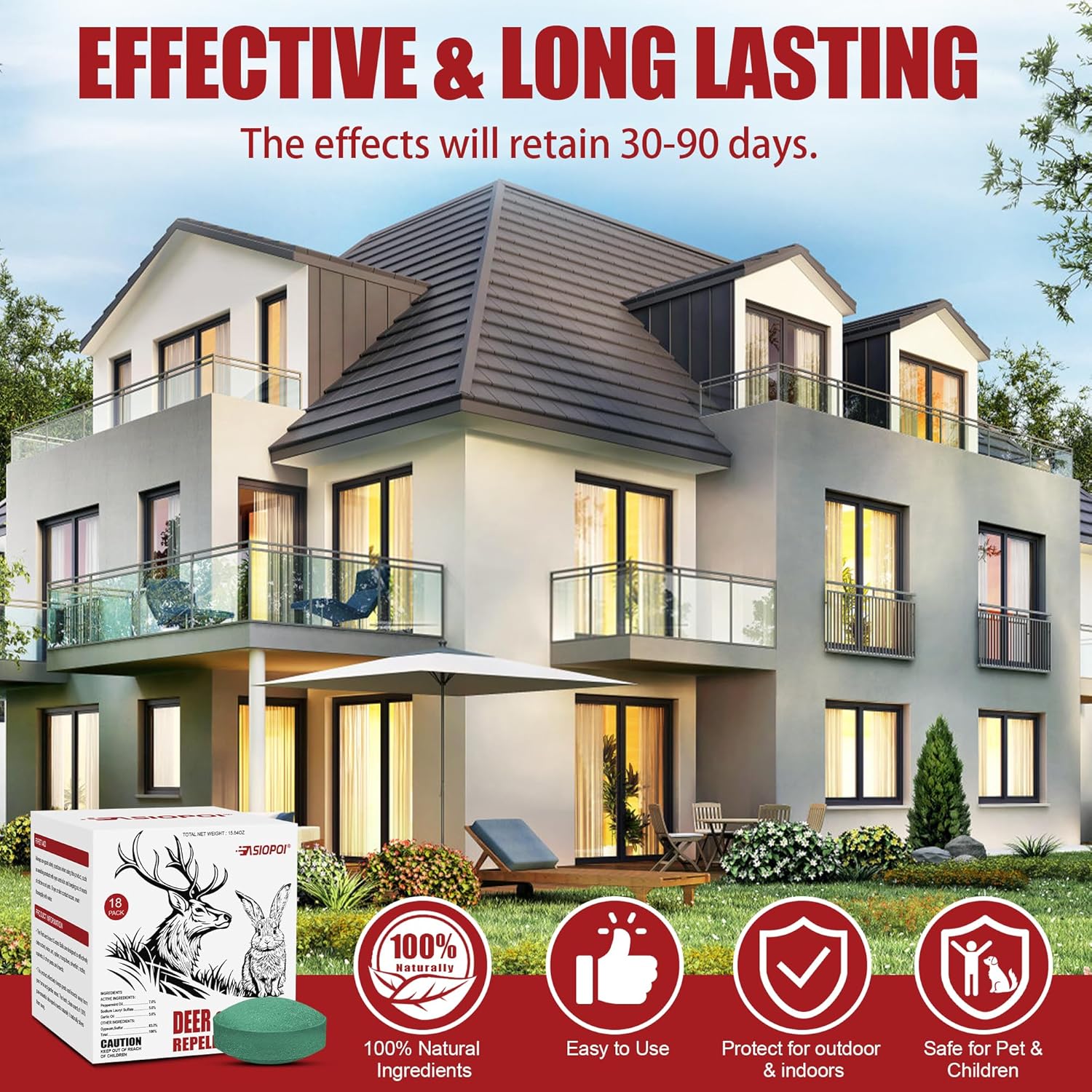 Long-Lasting & Weatherproof – Stays effective for up to 30-60 days, even in rain, snow, or extreme temperatures. No messy sprays or frequent reapplication!