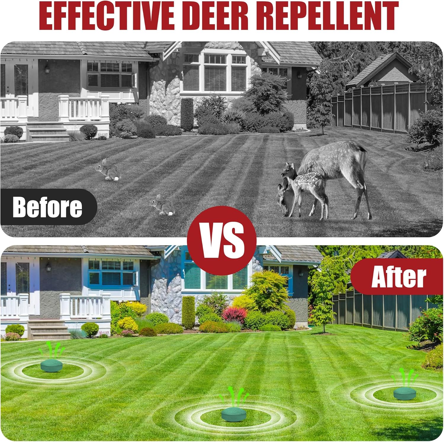 Multi-Purpose Defense – Ideal for lawns, vegetable patches, orchards, and landscaping. Works as a standalone solution or paired with deer deterrent devices.