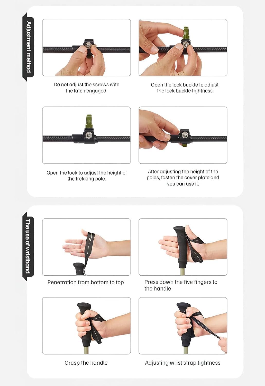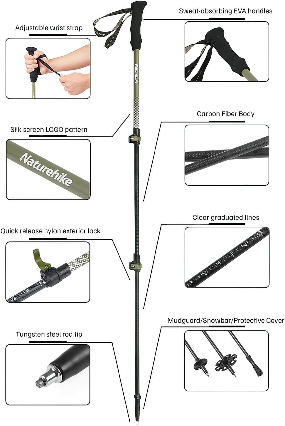 【Lightweight & High-Strength 3K Carbon Fiber Hiking Sticks】Naturehike’s 3-section telescopic trekking poles uses 3K carbon fiber. Its outer, middle and inner layers have carbon fibers in different directions, balancing lightweight with high strength, corrosion resistance, durability and reliability. The M size weighs about 0.35 lbs, folds to 22.44 inch—compact, portable, easily attachable to backpacks. Its lightweight design cuts burden and shoulder pressure, saving space for other gear.