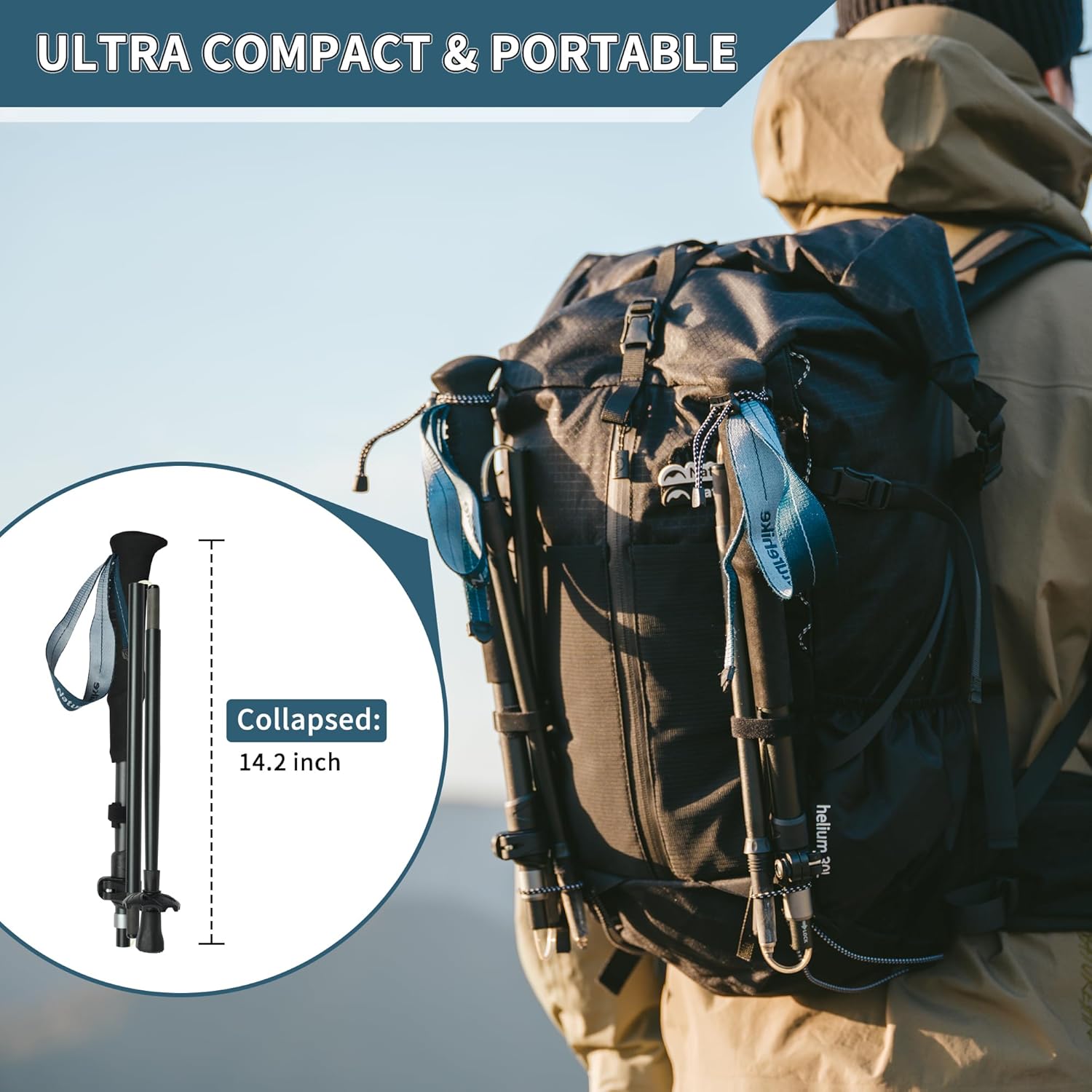 Compact & Portable – Our hiking poles are designed for portability, with a collapsible length of just 14.2 inches. Whether you’re traveling or just hauling your gear to the trailhead, these foldable hiking sticks fit easily in any bag.