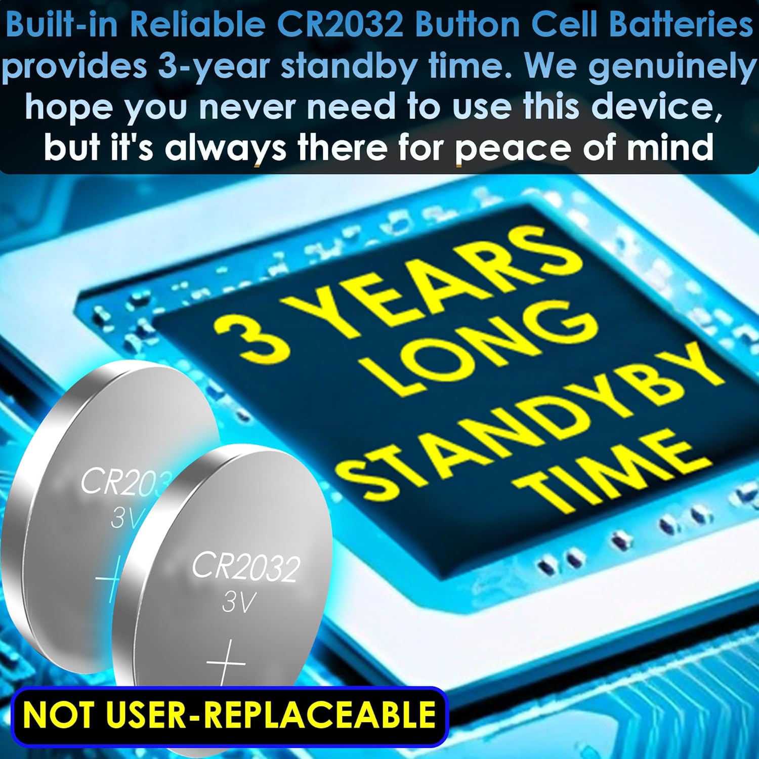 It emits a high-pitched, 130dB loud alarm that lasts up to 30 minutes or until the batteries are depleted. The piercing sound is highly effective in deterring potential threats and immediately attracting the attention of passersby for assistance.Re-insert the PIN TOP can stop siren.3 Years of Standby Time. Built-in Batteries CR2032 Button Cell x 2pcs (NOT USER-REPLACEABLE)