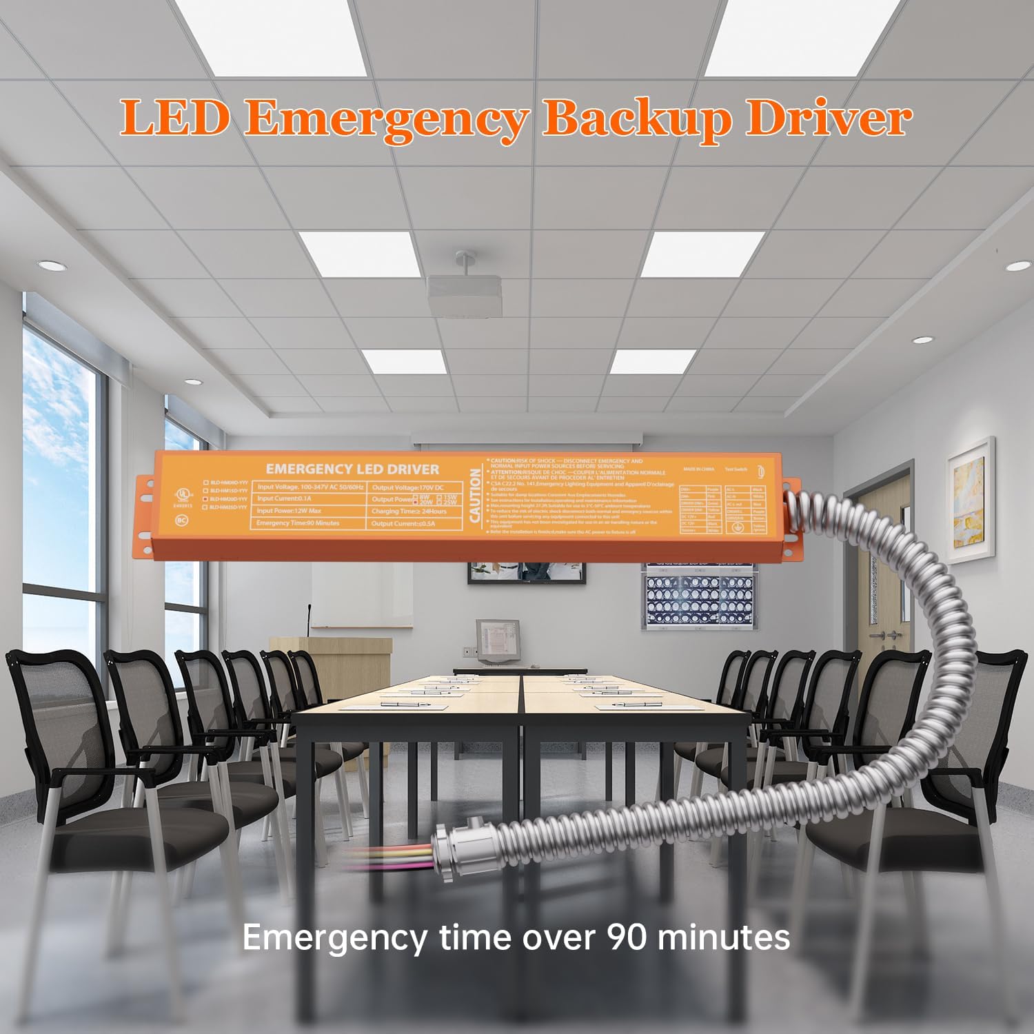 Emergency Mode: The battery backup driver provides at least 90 minutes of emergency lighting when power failure after 24hrs fully charged.