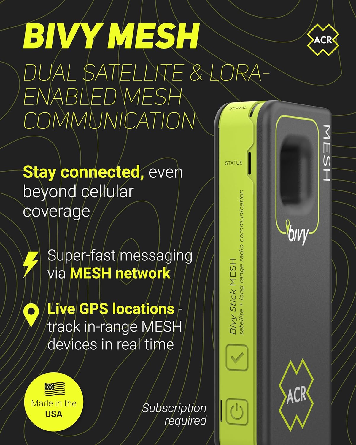 Intelligent Message Relay for Seamless Communication: The Bivy Stick MESH functions as a node to relay messages between devices or via satellite, keeping communication flowing even across extended distances. Devices indoors can relay messages via a nearby mesh unit outside.