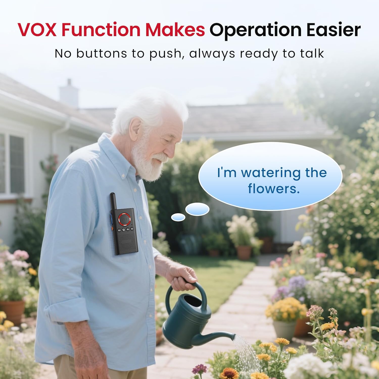 VOX Hands-Free & Easy Operation – User-Friendly for All Ages | The VOX feature lets you talk while cooking, gardening, or caring for others—no need to press buttons. Large PTT keys and a keypad lock prevent accidental channel changes, making this wireless intercoms for home easy for seniors, kids, and those with limited mobility. No learning curve required!