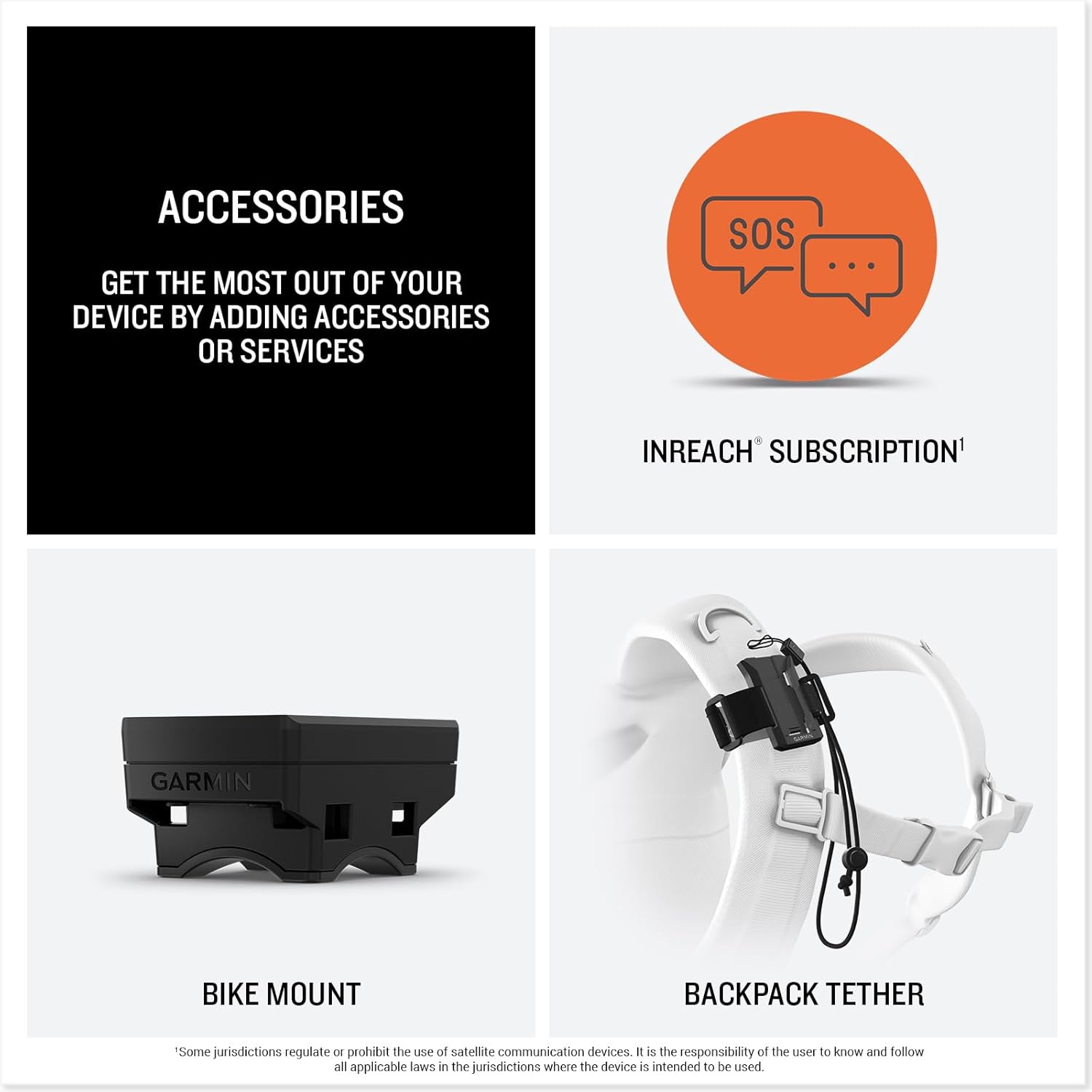 With an active inReach satellite subscription, you can trigger an interactive SOS message to the 24/7-staffed Garmin ResponseSM international coordination center for assistance in an emergency (some jurisdictions regulate or prohibit the use of satellite communication devices)