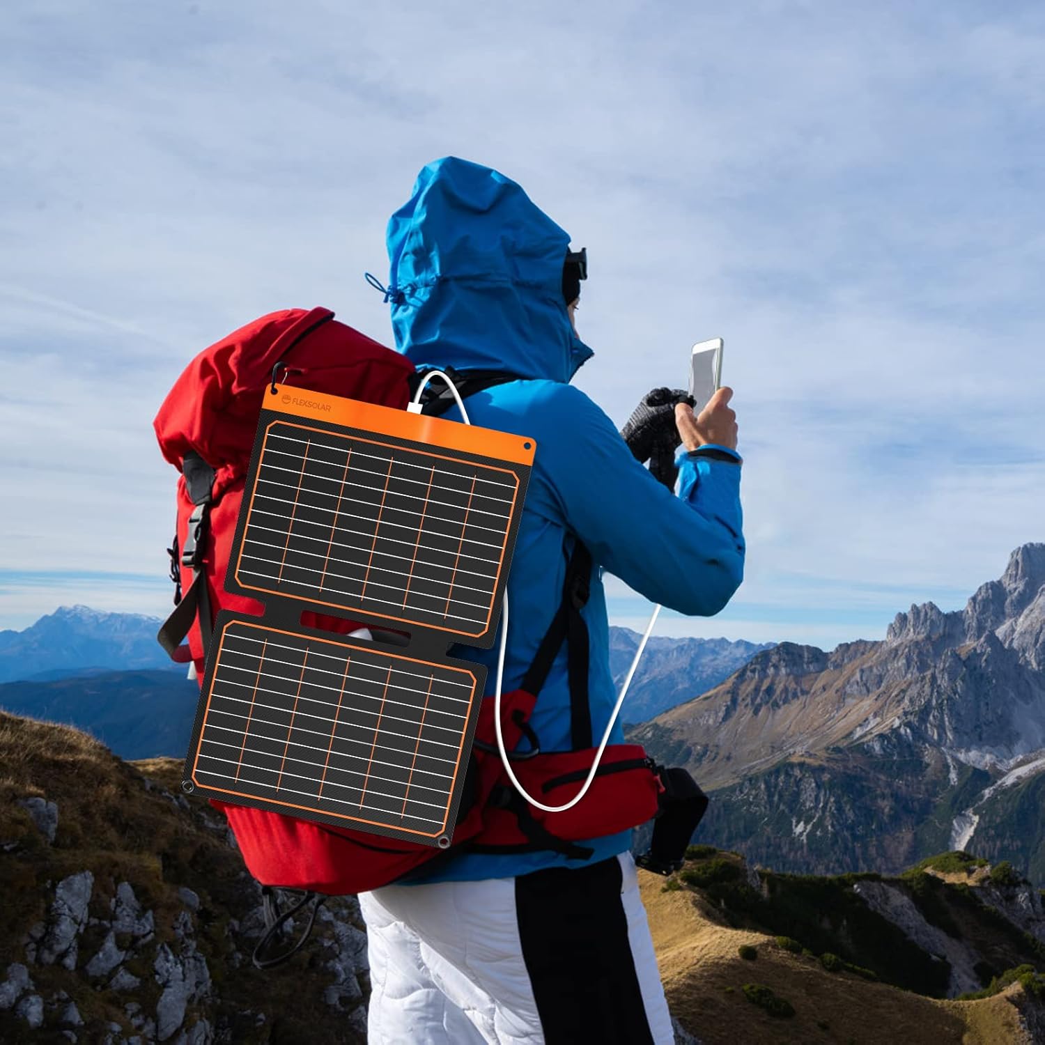 【Smart Charging Sun Power Panels】Integrated IC automatically make the auto-restart function which allows consistent charging becomes reality even when moving in or out of the shadow and detects the connected devices and provides the optimized charging, and an included LED light shows the charging status. The red light is on and means that solar panel is normal and you can chage your devices. FlexSolar ensure safe charging with overcurrent, overheating and short-circuit protection.