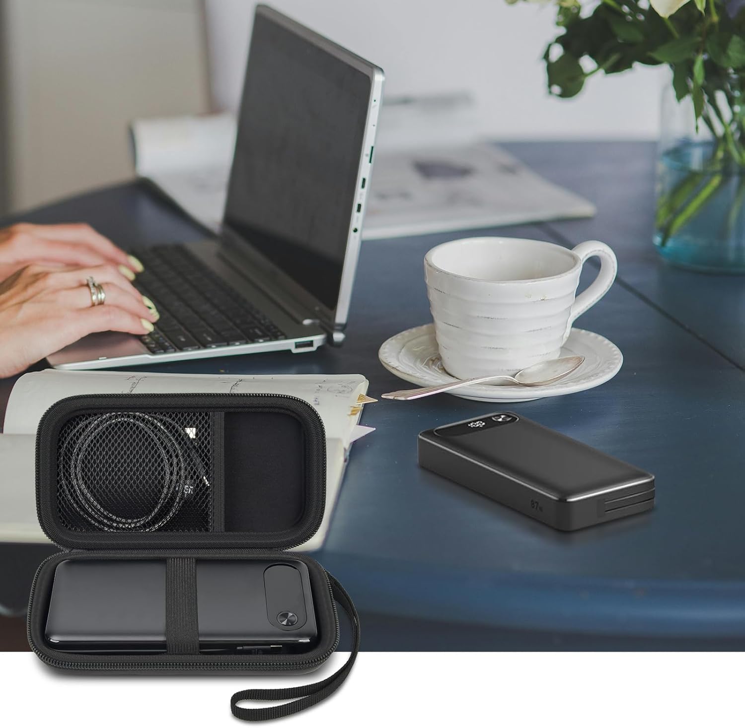 Comprehensive Protection for Travel Battery Bank Pouch: With an internal mesh pocket for USB cables and other accessories, this case keeps your charging essentials neatly organized. The built-in elastic band ensures your power bank stays in place, even if the case is turned upside down