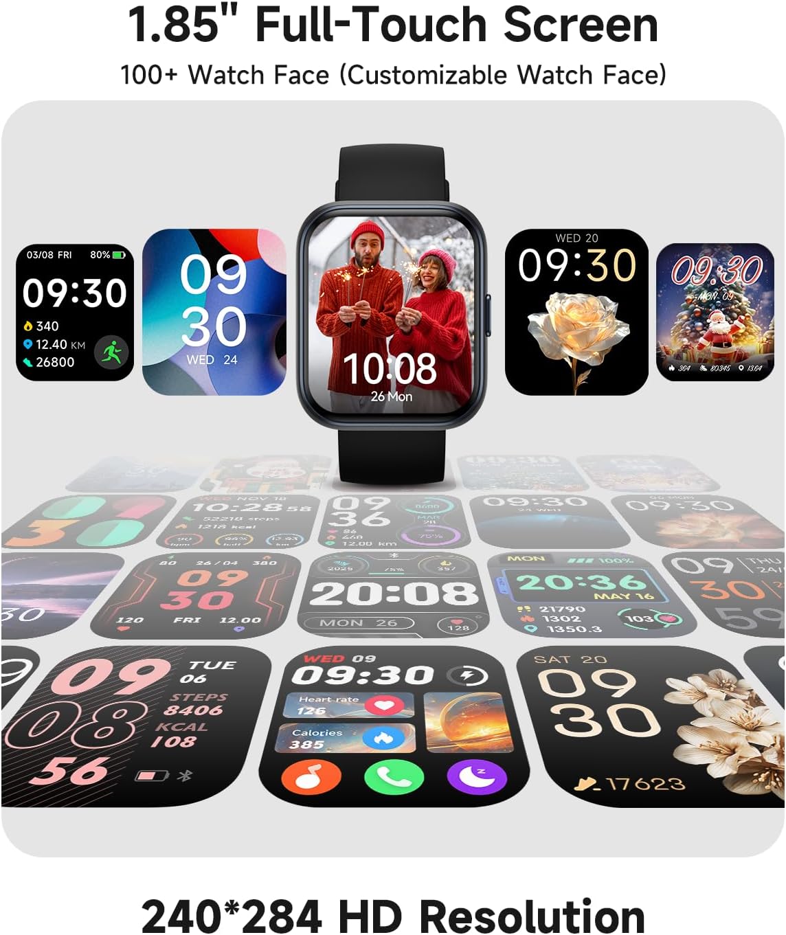 【1.85″ HD Touchscreen | 60Hz Smooth Display】Scroll seamlessly on a vibrant 1.85″ HD screen with buttery-smooth 60Hz refresh rates. Personalize your watch face with your favorite photos—family, pets, or travel memories—to match your style.