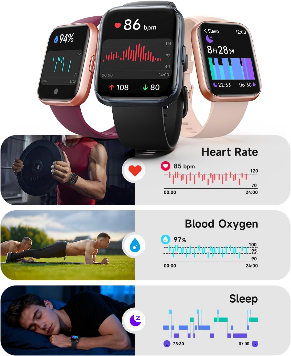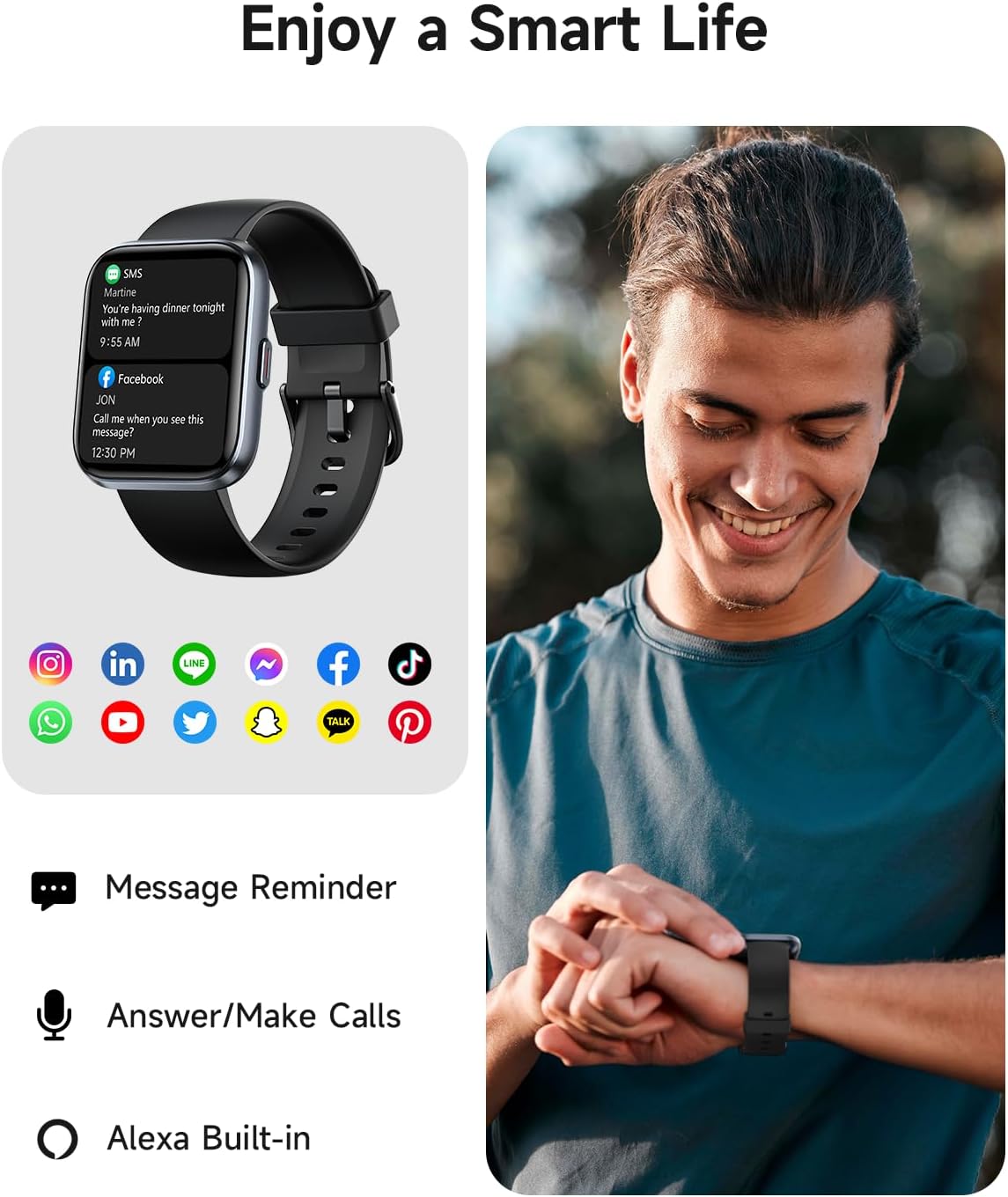 【Bluetooth 5.3 with DSP Chip】Enjoy crystal-clear calls and instant notifications on your wrist. Our advanced Bluetooth 5.3 and built-in DSP chip deliver zero-lag audio, so you never miss a conversation—even on the move. (Note: Supports notifications but not message replies.)