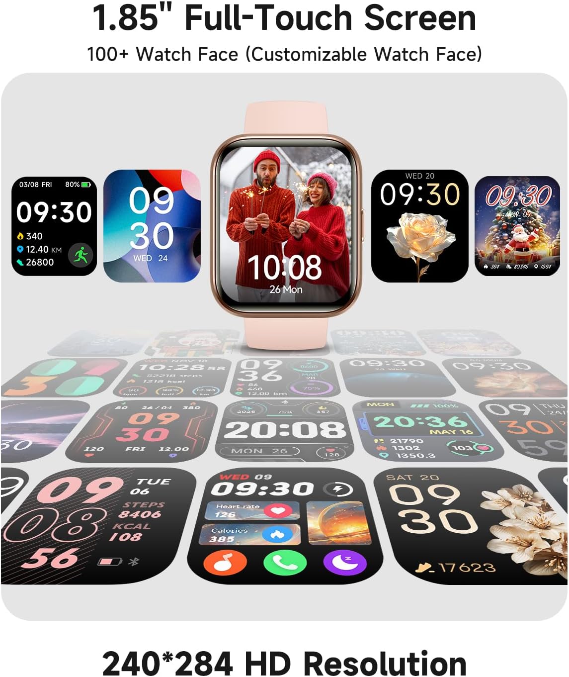 【1.85″ HD Touchscreen | 60Hz Smooth Display】Scroll seamlessly on a vibrant 1.85″ HD screen with buttery-smooth 60Hz refresh rates. Personalize your watch face with your favorite photos—family, pets, or travel memories—to match your style.