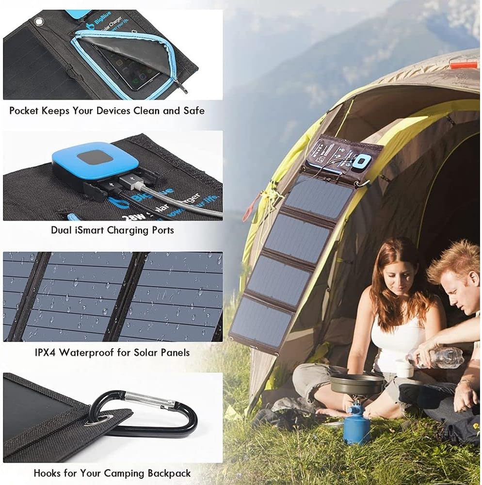 Effortless Operation: Achieve peak performance by unfolding all four panels under full direct sunlight. Connect your compatible device to the USB ports using the provided cables (Note: This solar charger does not store energy; it charges connected devices directly in direct sun). Complete kit includes: 1xBigBlue 28W Solar Charger, 1xUSB-C to USB-C Cable, 4xDurable Carabiners, plus our responsive and friendly customer service.