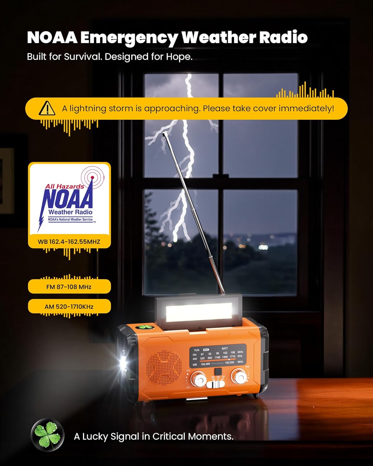 Extended Antenna + Fire Starter: Get critical AM/FM/NOAA broadcasts loud and clear, even in remote areas, thanks to the powerful extended antenna. Plus, our weather radio exclusive integrated electronic fire starter ensures you can ignite tinder fast for warmth, cooking, or signaling, especially crucial in cold, wet conditions or when conventional fire sources fail.