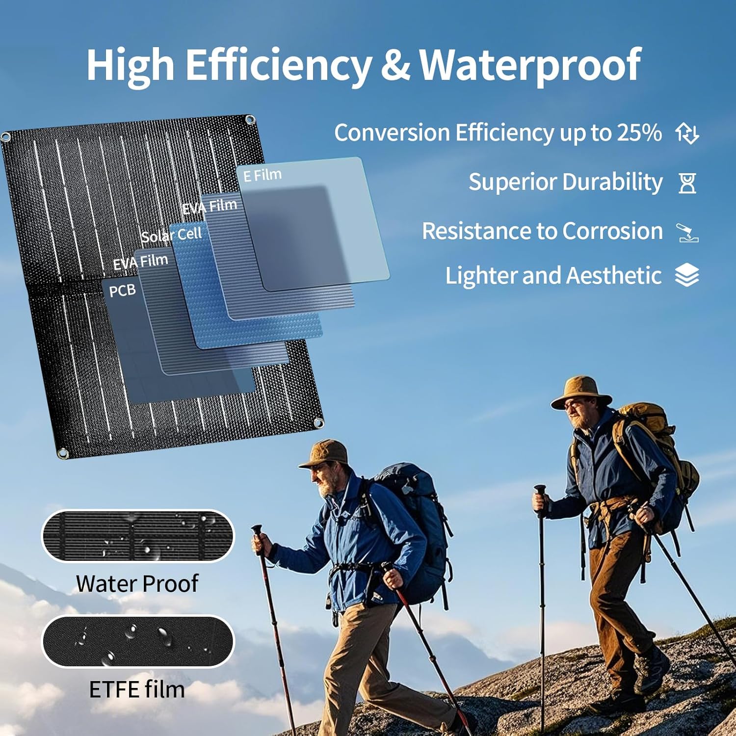 【WATERPROOF & DUSTPROOF】The backpacking solar panel is waterproof and dustproof, which is better preparedfor occasional bad weather or unexpected conditions. If stained, just wipe the solar panels gently with a wet cloth and it will get clean as brand new.