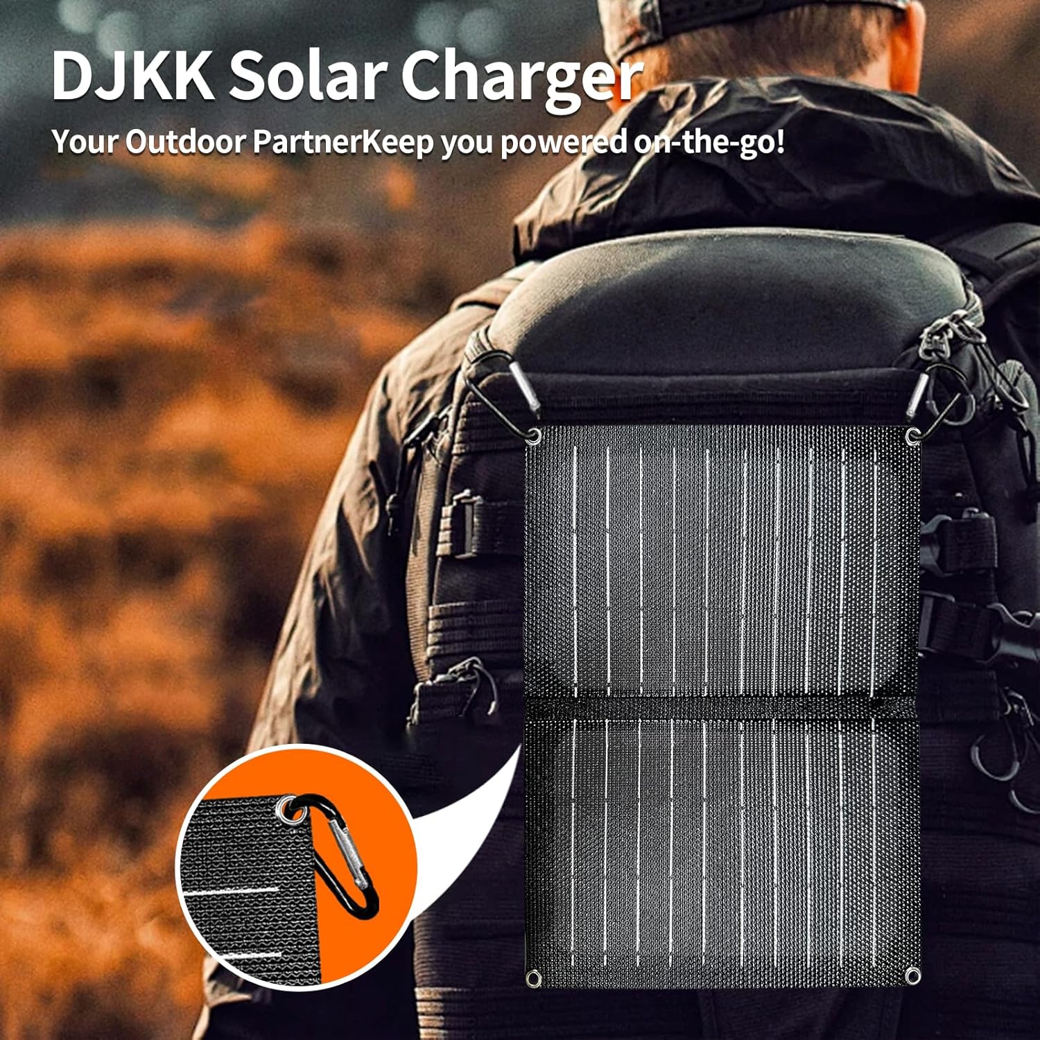 【Wide Device Compatibility】Equipped with both USB-A and USB-C outputs, this solar charger is compatible with a wide range of devices including smartphones, tablets, GPS units, and power banks. Pair it with the DJKK solar power bank for ultimate convenience.