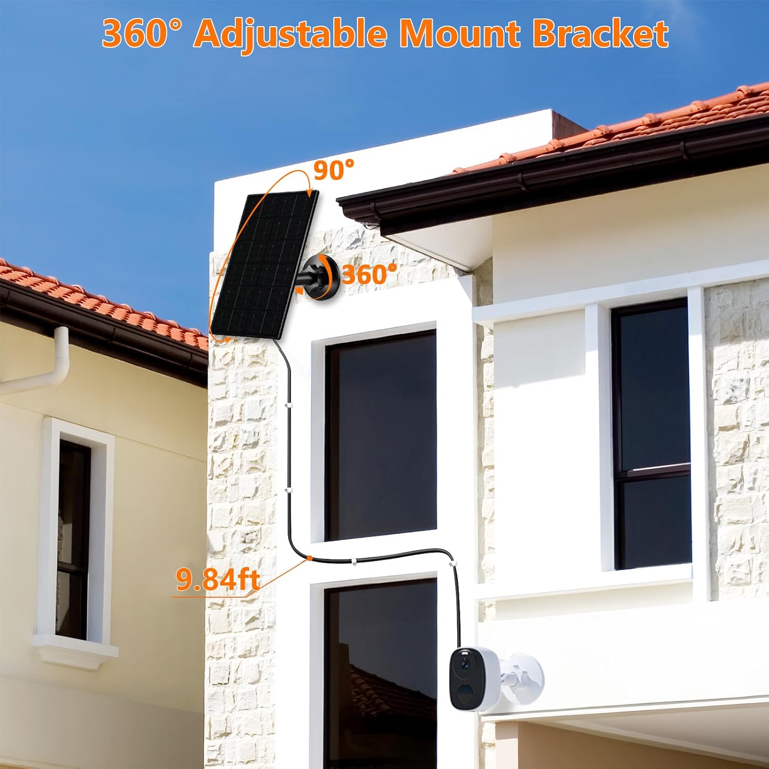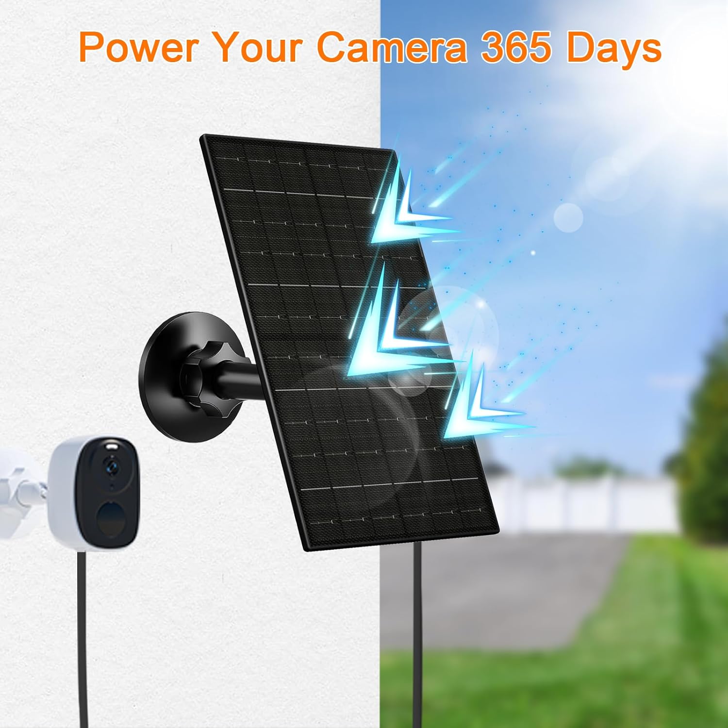 Solar Panel for Security Camera: This 6W USB solar panel is designed to power most rechargeable, battery-operated security cameras with Micro USB or Type-C charging ports. It provides continuous, stable power without the need for frequent battery replacements, making it suitable for long-term use. However, it is not compatible with Arlo, Blink, Ring, Google Nest, Kasa, or other non-rechargeable cameras.